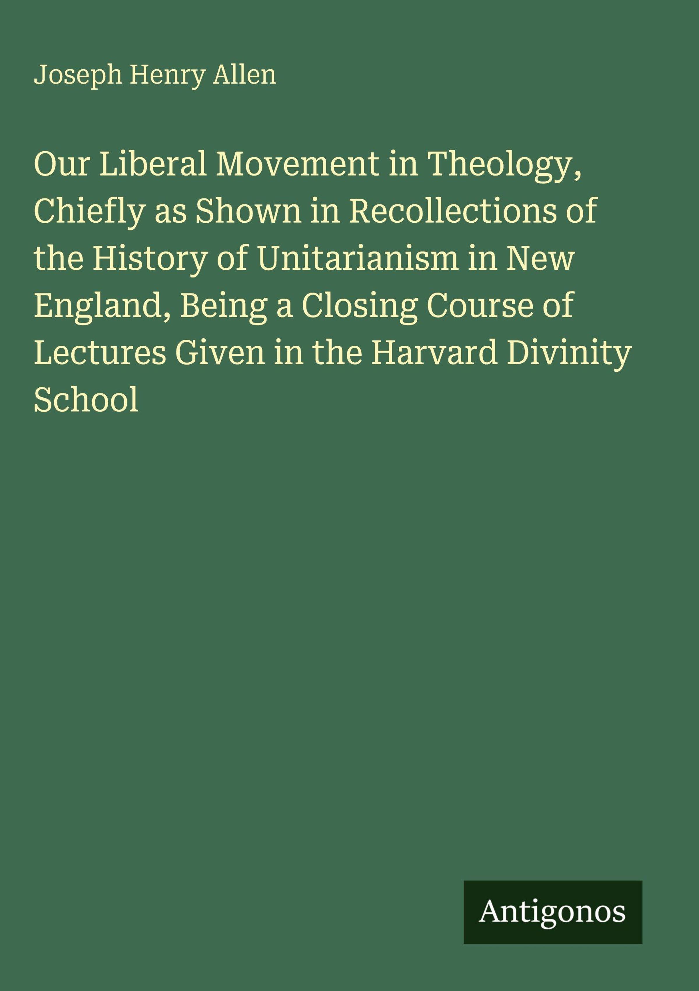 Weitere Ausgaben von Our Liberal Movement in Theology, Chiefly as Shown in Recollections of the History of Unitarianism in New England, Being a Closing Course of Lectures Given in the Harvard Divinity School |