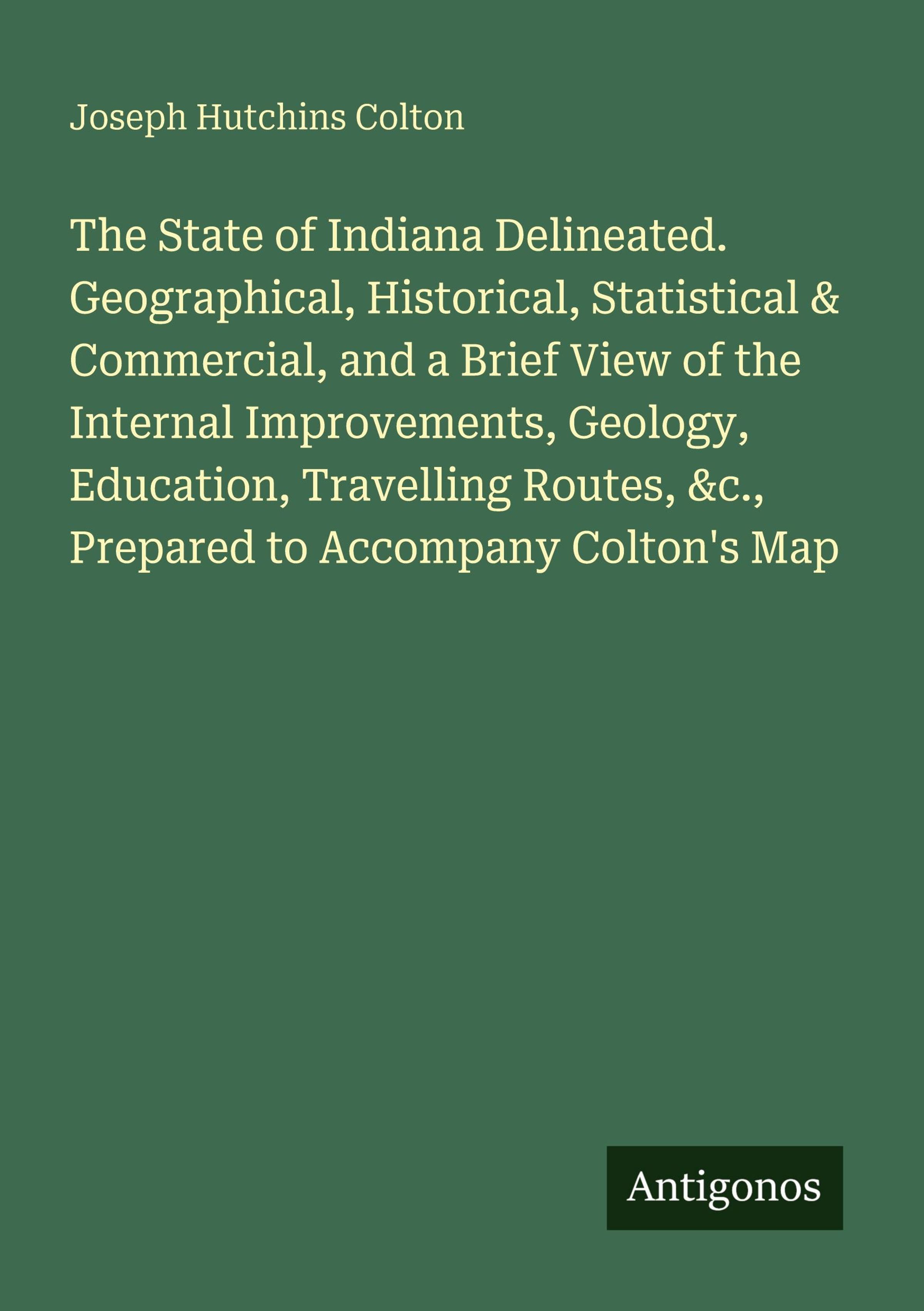 The State of Indiana Delineated. Geographical, Historical, Statistical & Commercial, and a Brief View of the Internal Improvements, Geology, Education, Travelling Routes, &c., Prepared to Accompany Colton's Map