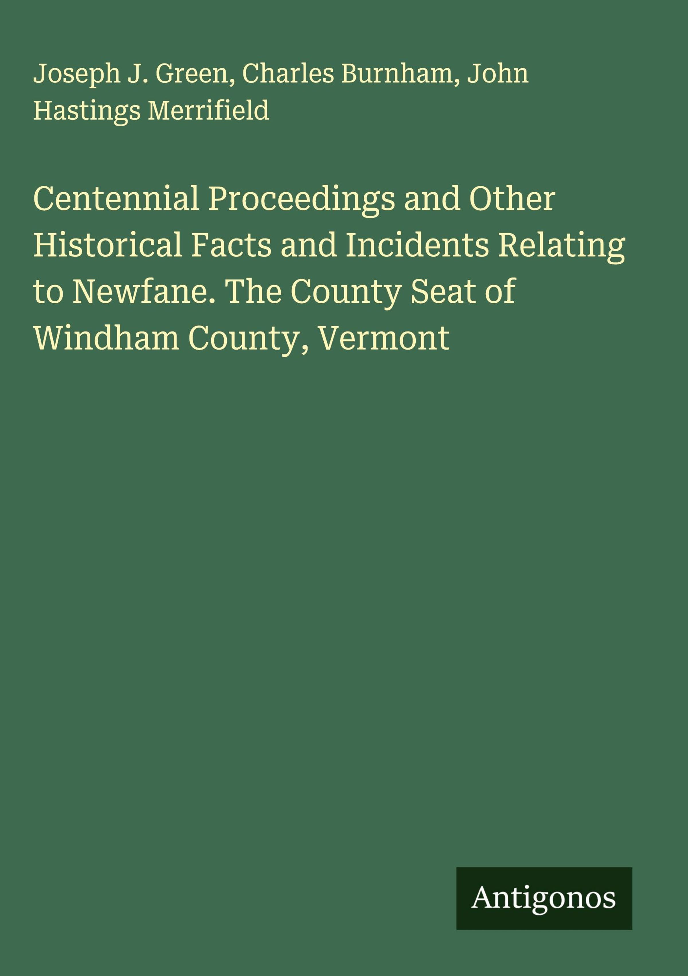 Joseph J. Green: Centennial Proceedings and Other Historical Facts and Incidents Relating to Newfane. The County..., Gebunden