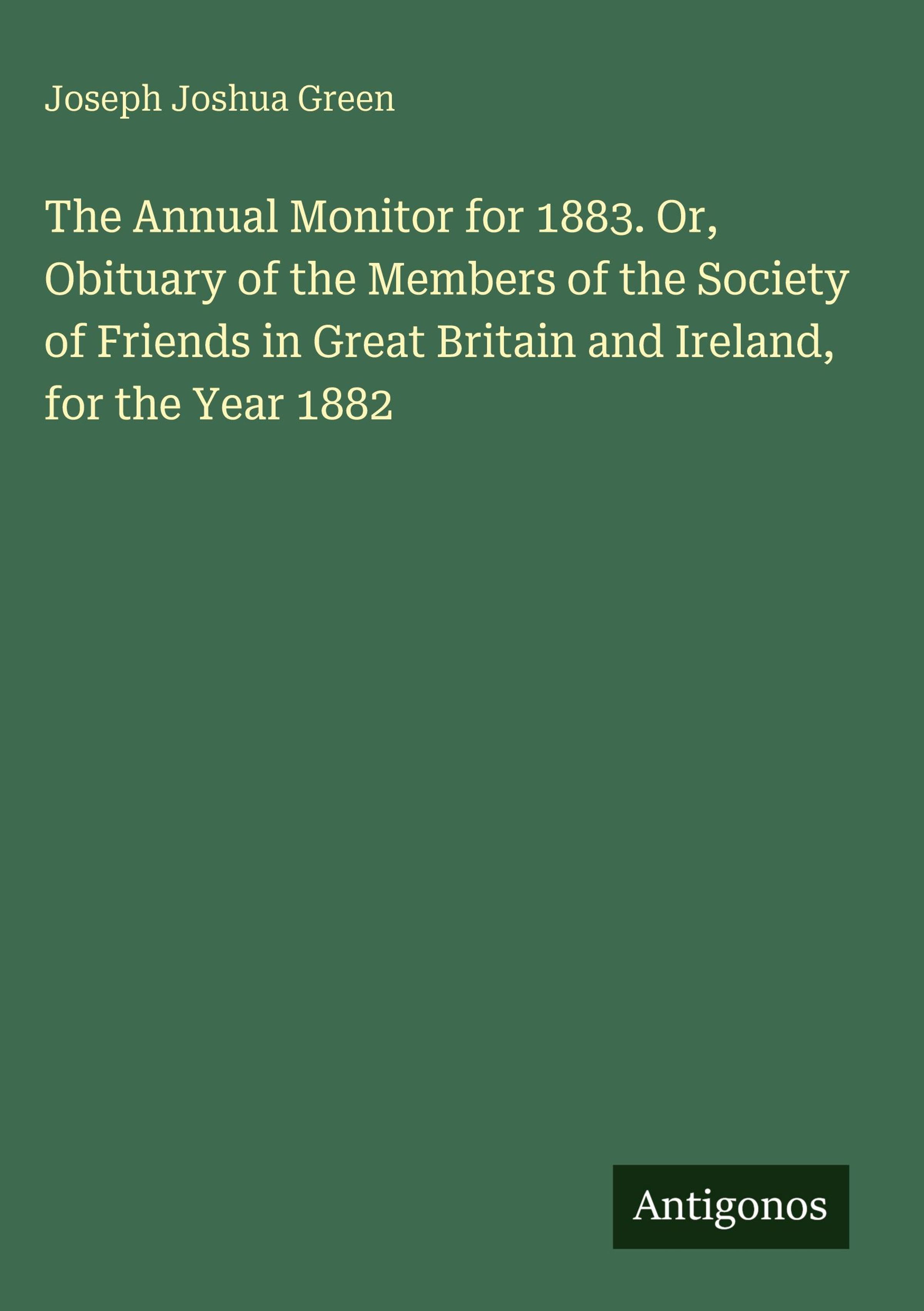 Joseph Joshua Green: The Annual Monitor for 1883. Or, Obituary of the Members of the Society of Friends in Great..., Gebunden