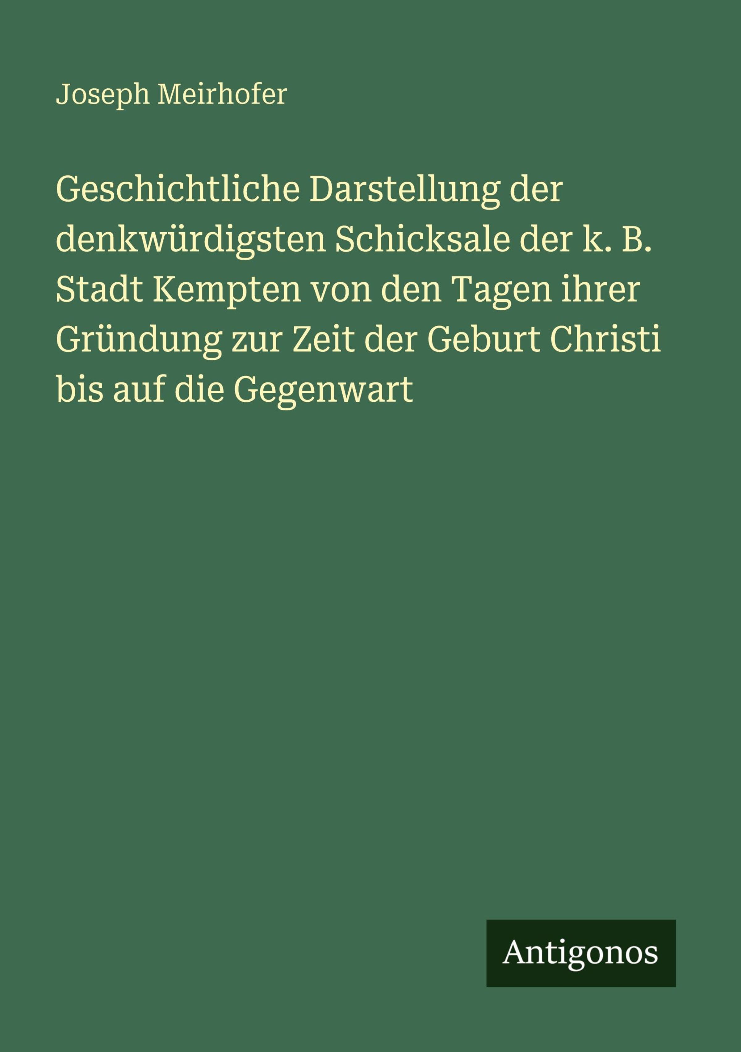 Geschichtliche Darstellung der denkwürdigsten Schicksale der k. B. Stadt Kempten von den Tagen ihrer Gründung zur Zeit der Geburt Christi bis auf die Gegenwart
