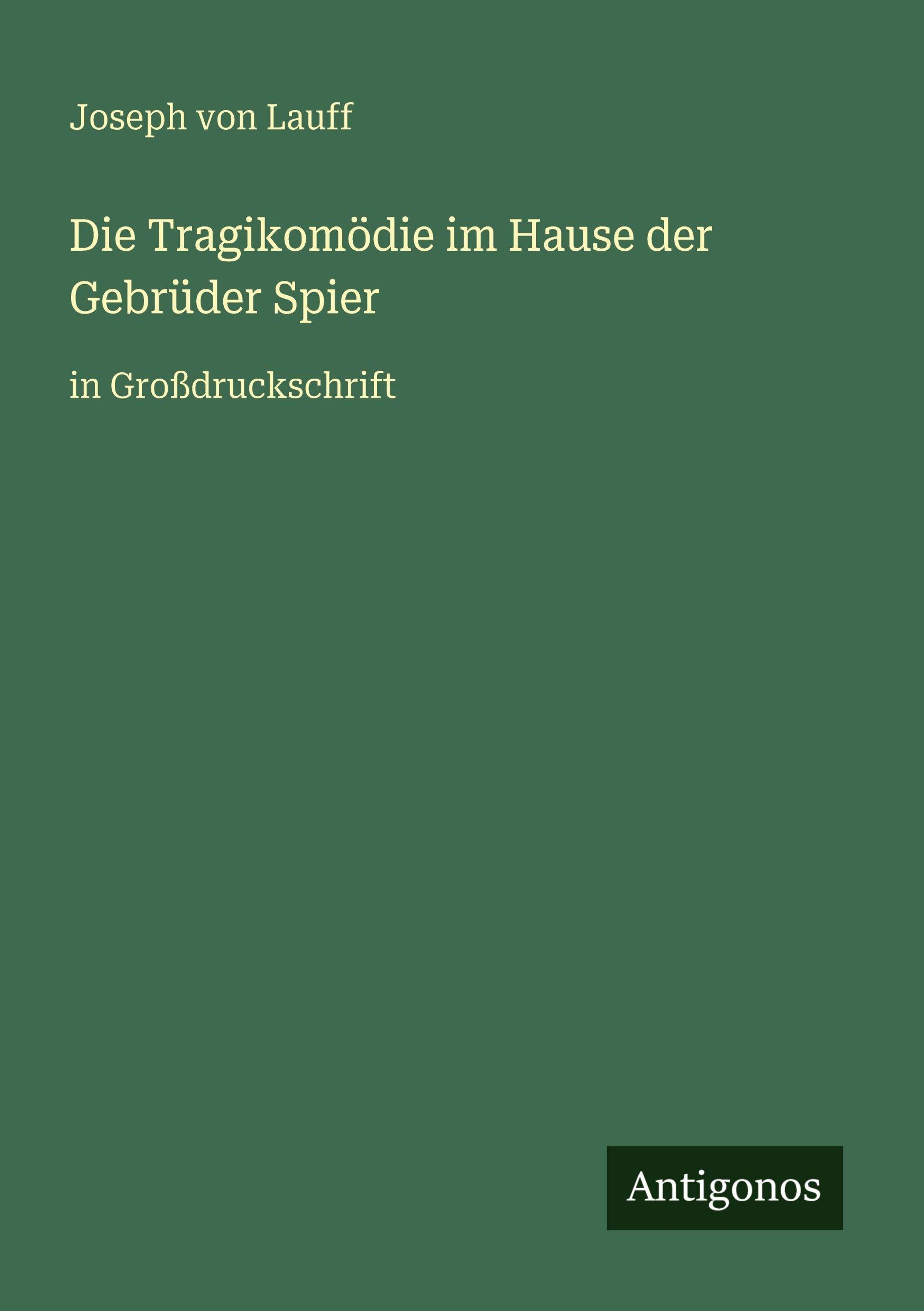 Joseph Von Lauff: Die Tragikomödie im Hause der Gebrüder Spier, Kartoniert / Broschiert