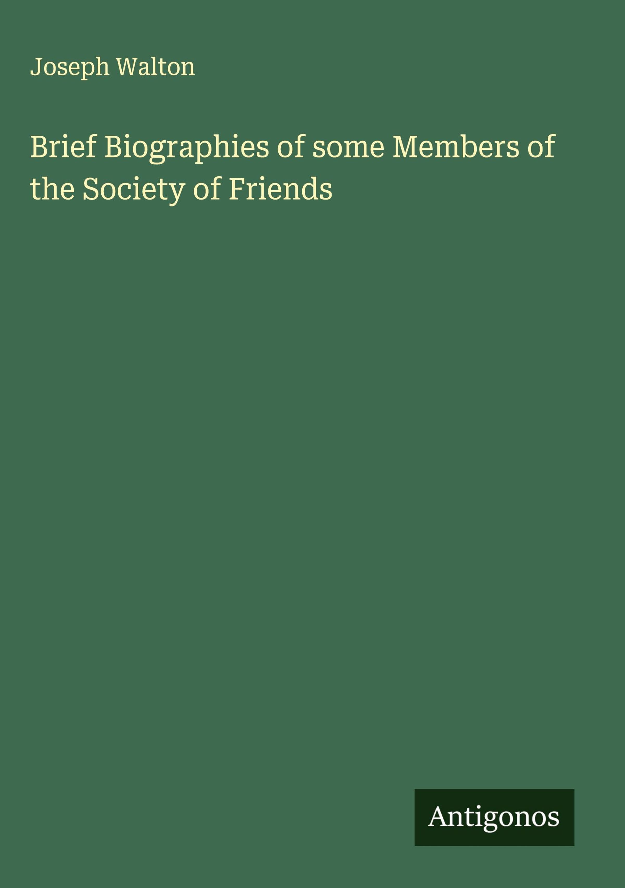 Joseph WaltonBrief Biographies of Some Members of the Society of Friends. Showing Their Early Religious Exercises, and Experience in the Work of RegenerationBuchAktueller Preis: EUR 34,90