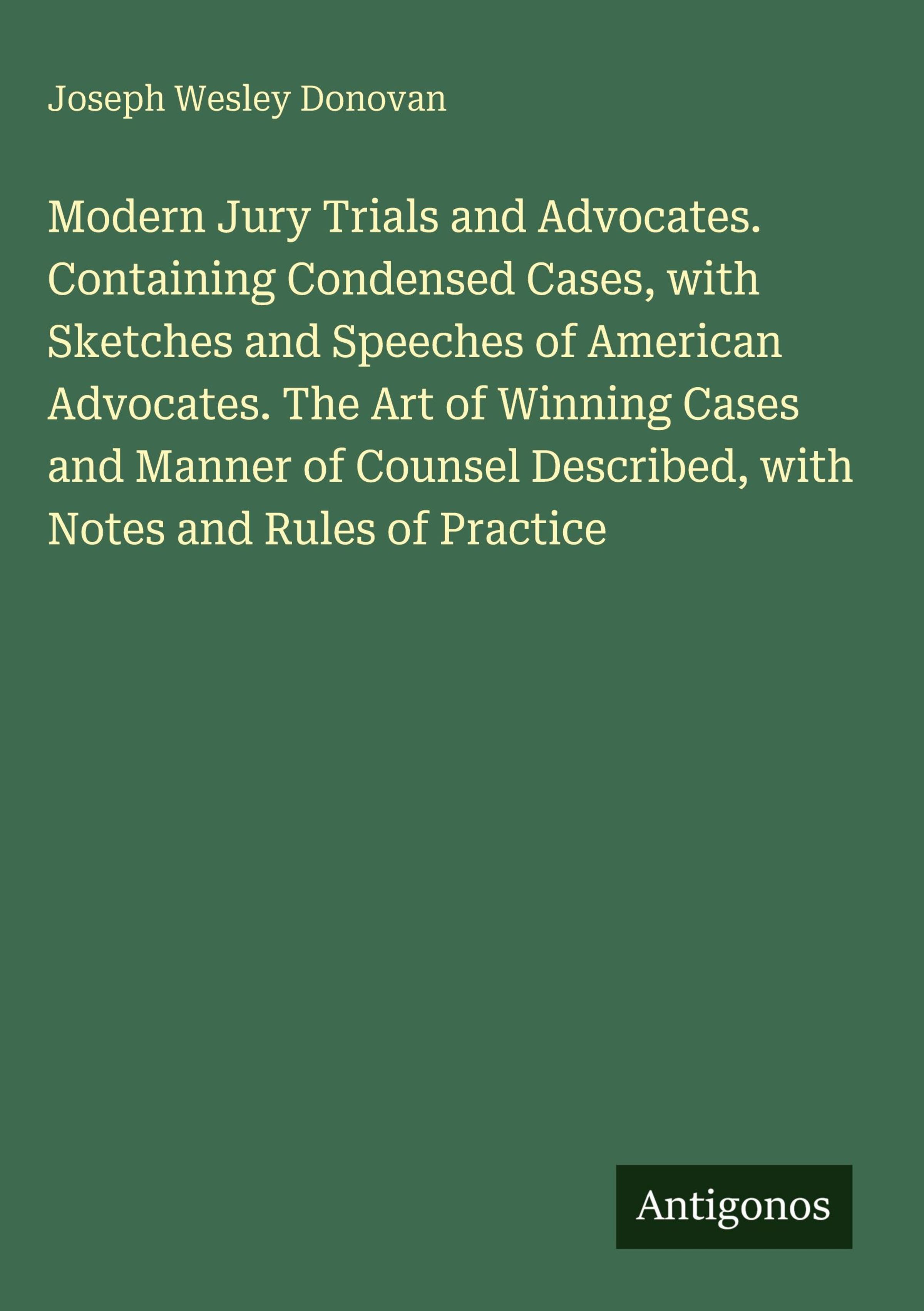 Joseph Wesley Donovan: Modern Jury Trials and Advocates. Containing Condensed Cases, with Sketches and Speeches..., Gebunden