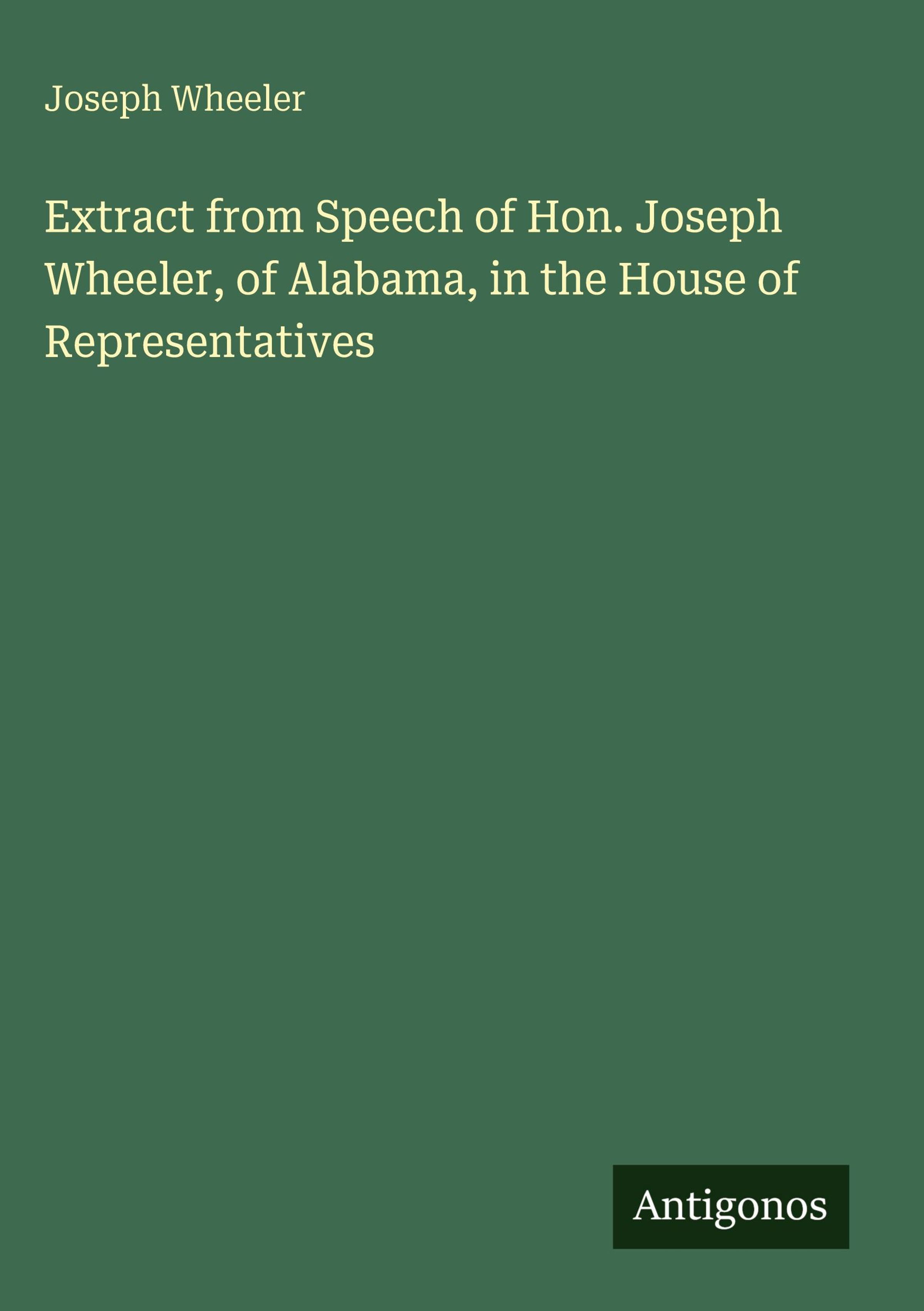 Joseph Wheeler: Extract from Speech of Hon. Joseph Wheeler, of Alabama, in the House of Representatives, Gebunden