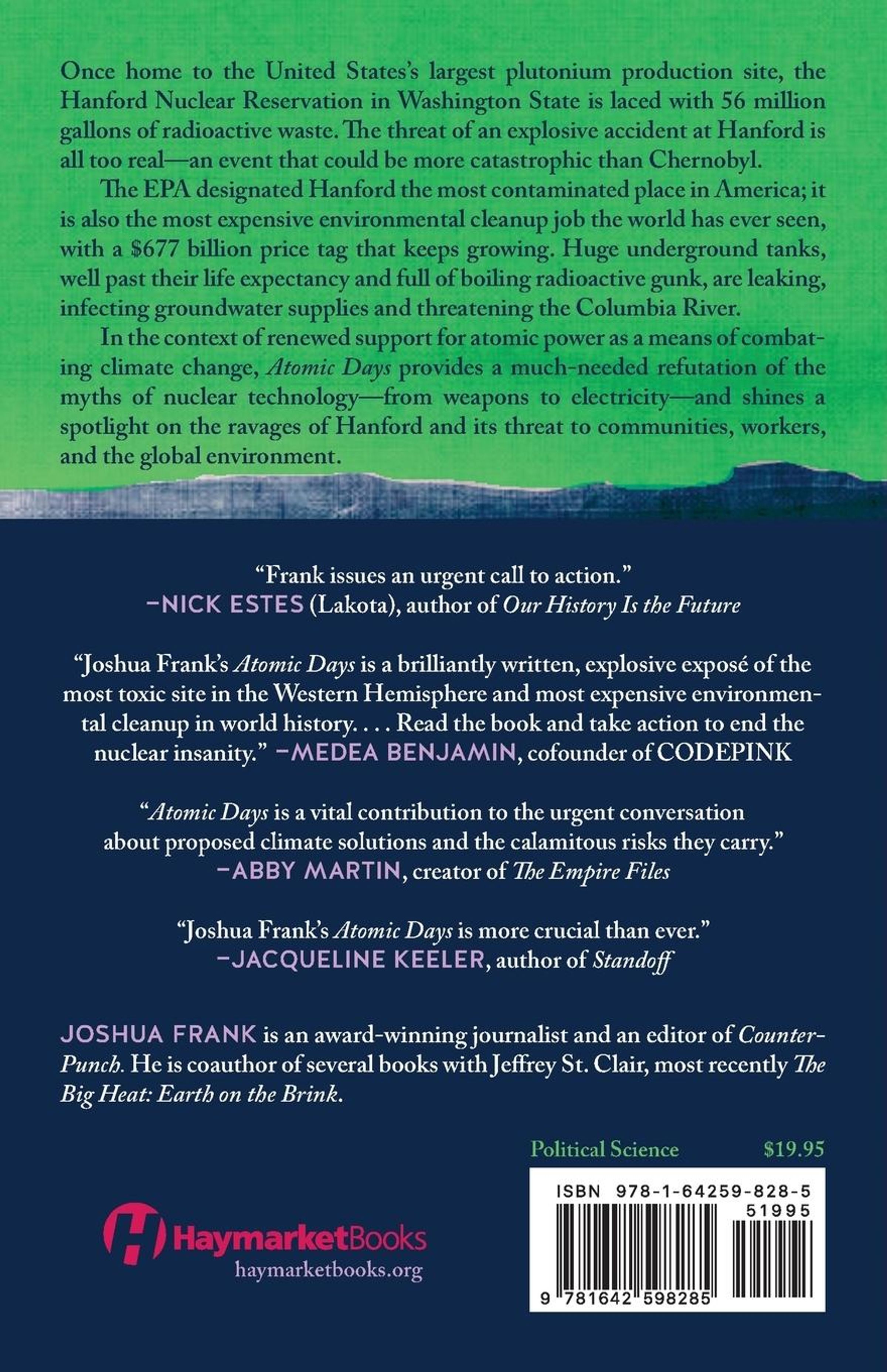 Whistleblowers, worried that the worst is ahead, are now speaking out, begging to be heard and hoping their pleas help bring attention to the dire situation at Hanford. Aside from a few feisty community groups and handful of Indigenous activists, there is very little public scrutiny of the clean-up process, which is managed by the Department of Energy and carried out by contractors with shoddy track records, like Bechtel. In the context of renewed support for atomic power as a means of combating climate change, Atomic Days provides a much-needed refutation of the myths of nuclear technology-from weapons to electricity-and shines a spotlight on the ravages of Hanford and its threat to communities, workers and the global environment.