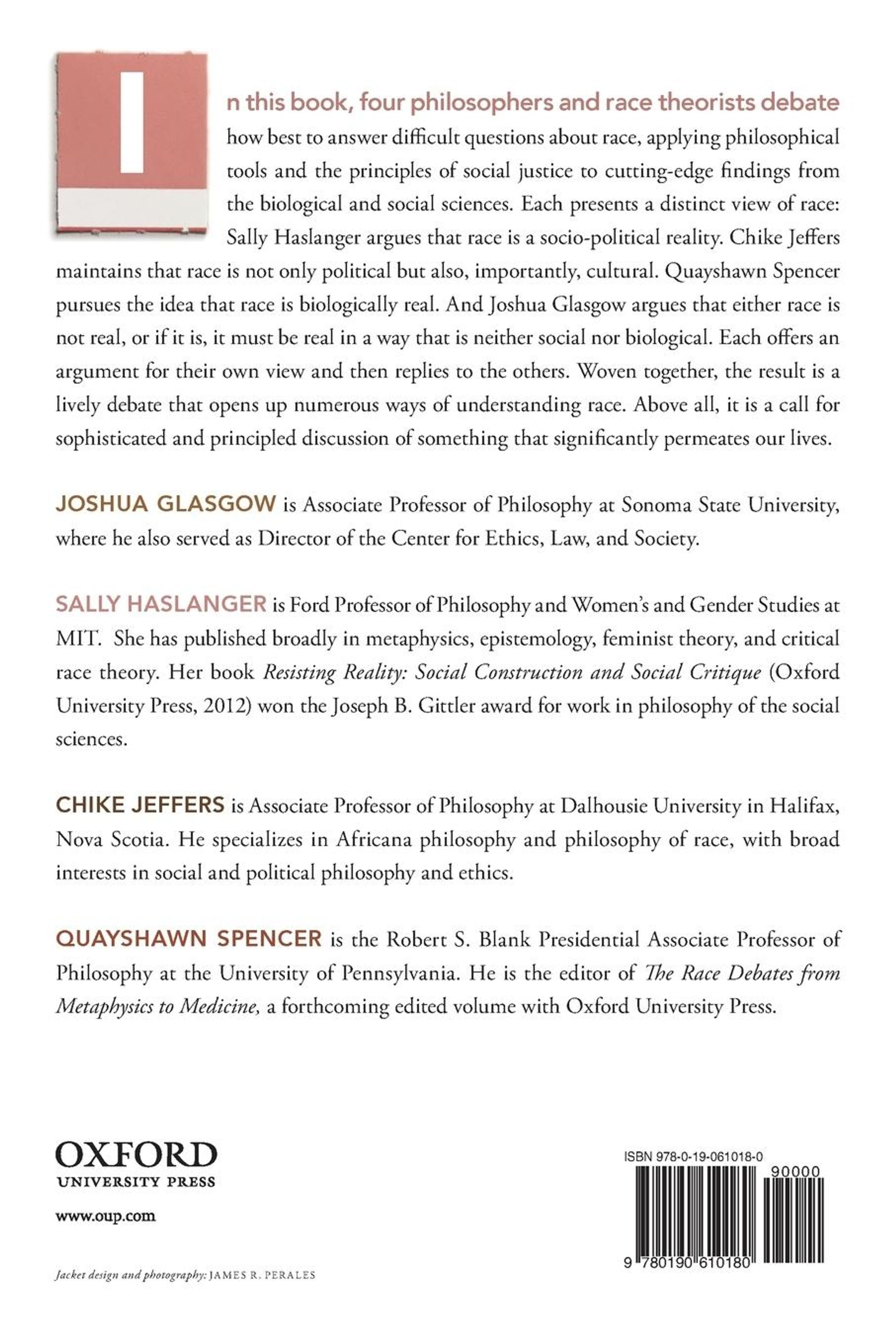 In this debate-format book, four philosophers--Joshua Glasgow, Sally Haslanger, Chike Jeffers, and Quayshawn Spencer--articulate contrasting views on race. Each author presents a distinct viewpoint on what race is, and then replies to the others, offering theories that are clear and accessible to undergraduates, lay readers, and non-specialists, as well as other philosophers of race.