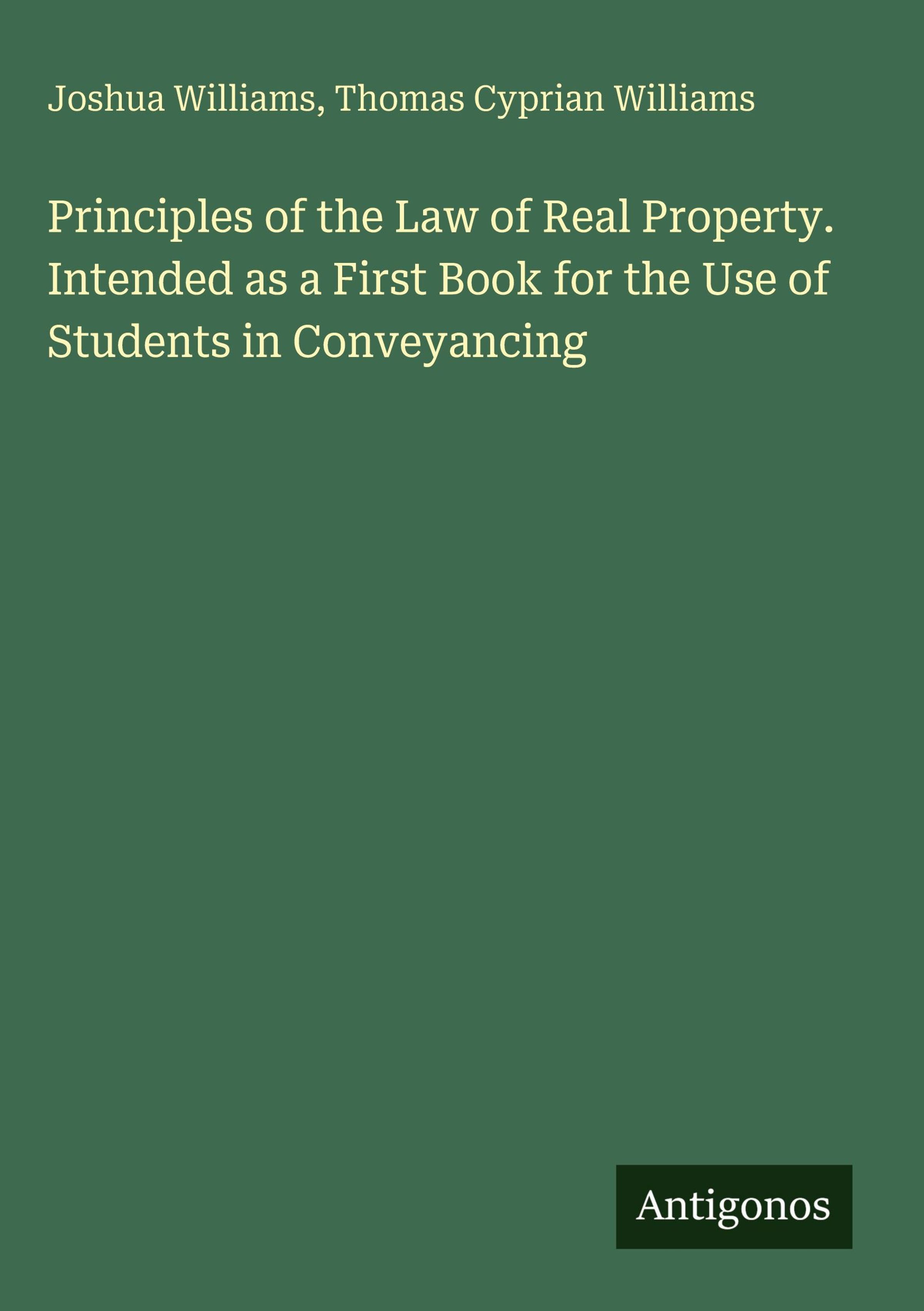Joshua Williams: Principles of the Law of Real Property. Intended as a First Book for the Use of Students in..., Gebunden