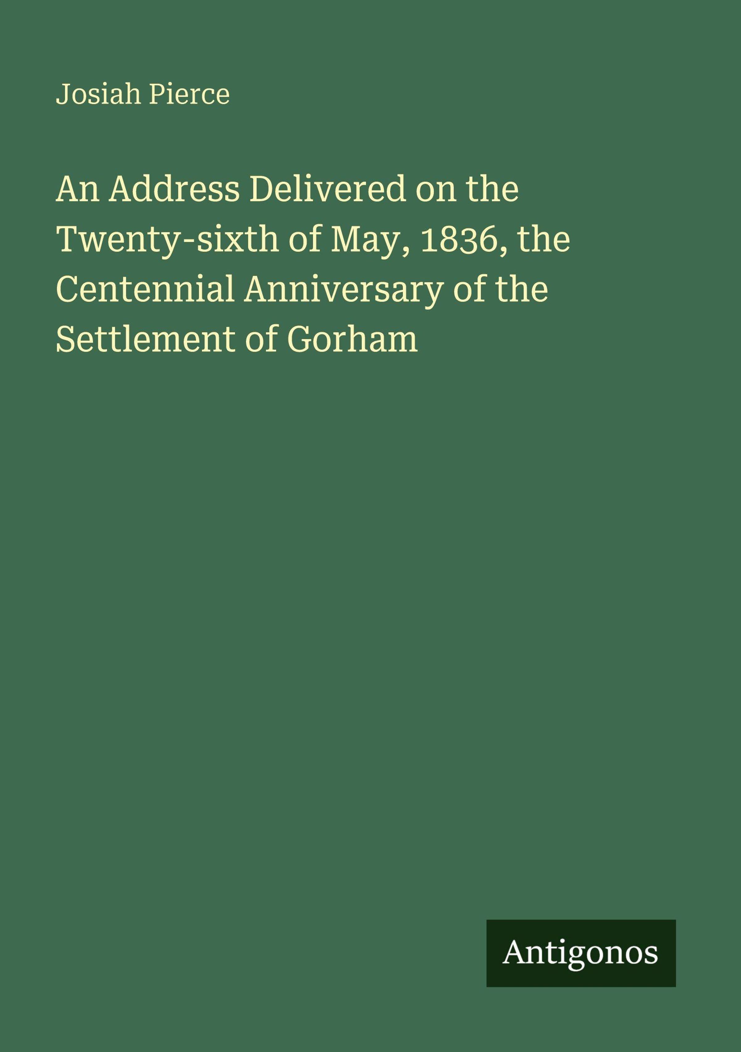Der Artikel Josiah Pierce: An Address Delivered on the Twenty-sixth of May, 1836, the Centennial Anniversary of the Settlement of Gorham wurde in den Warenkorb gelegt.