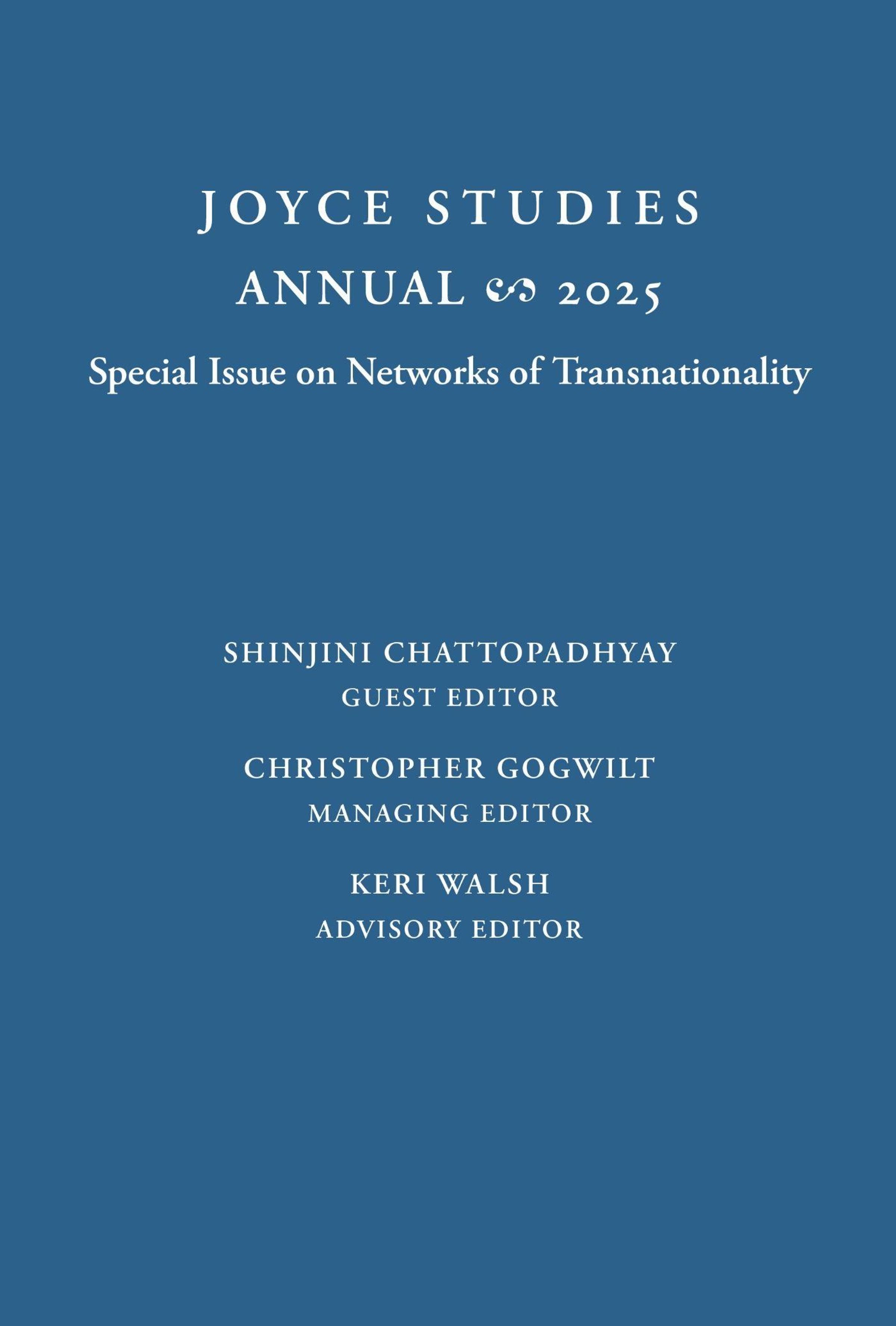 Blauer Hintergrund mit weißem Text: "Joyce Studies Annual 2025". Spezialausgabe über transnationale Netzwerke., Buch