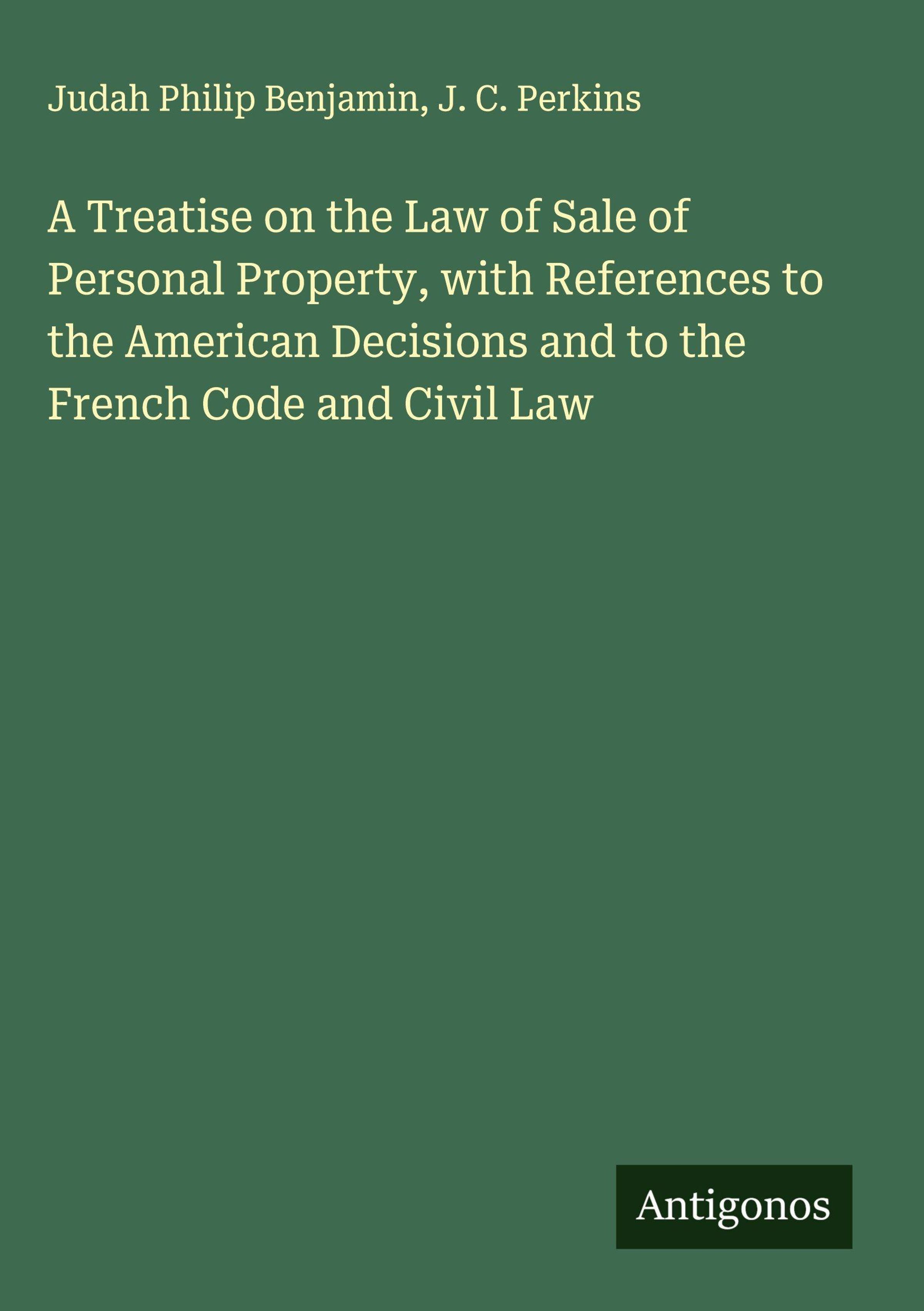 A Treatise on the Law of Sale of Personal Property, with References to the American Decisions and to the French Code and Civil Law