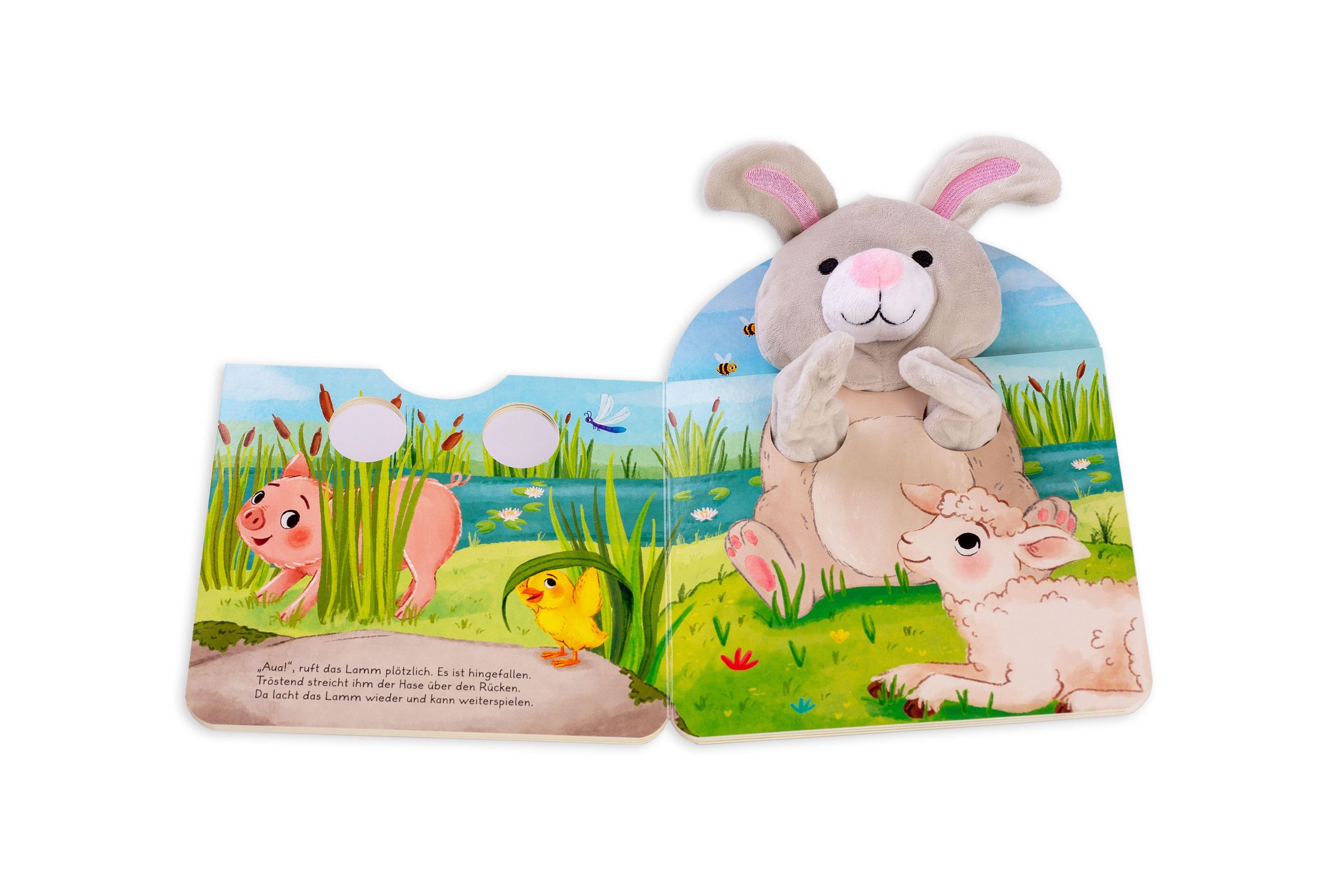 - Pappe, Mit ins Buch integrierter Hasen-Handpuppe zum Spielen