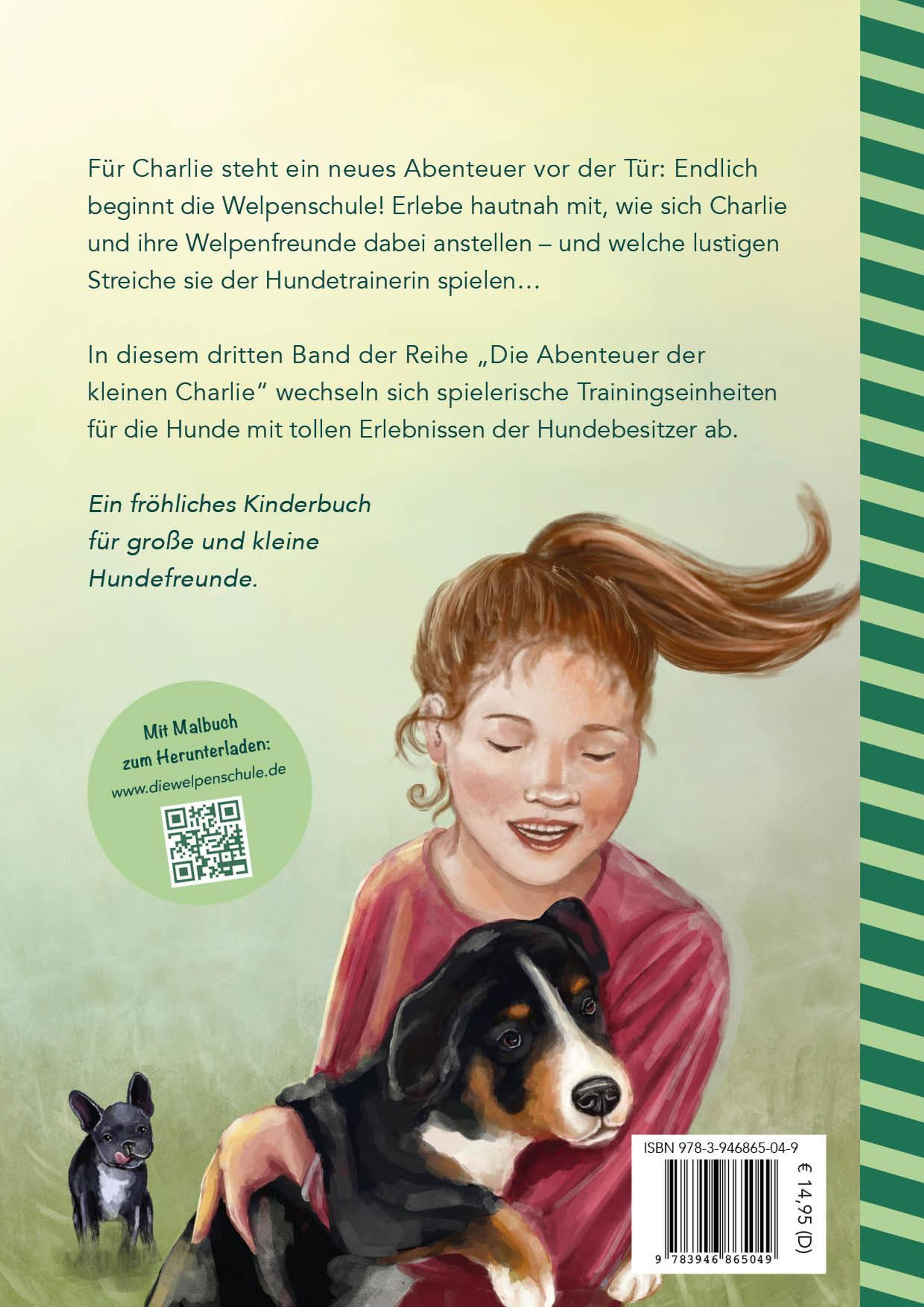 Charlie und ihre Freunde sind zurück und erleben in diesem Band ein neues, spannendes Abenteuer: Charlie darf nun die Welpenschule besuchen. Dieses Kinderbuch zeigt, dass Charlie dort nicht nur neue Fähigkeiten erlernt, an denen sie wächst, sondern auch Freundschaften knüpft und wunderbare Momente erlebt.