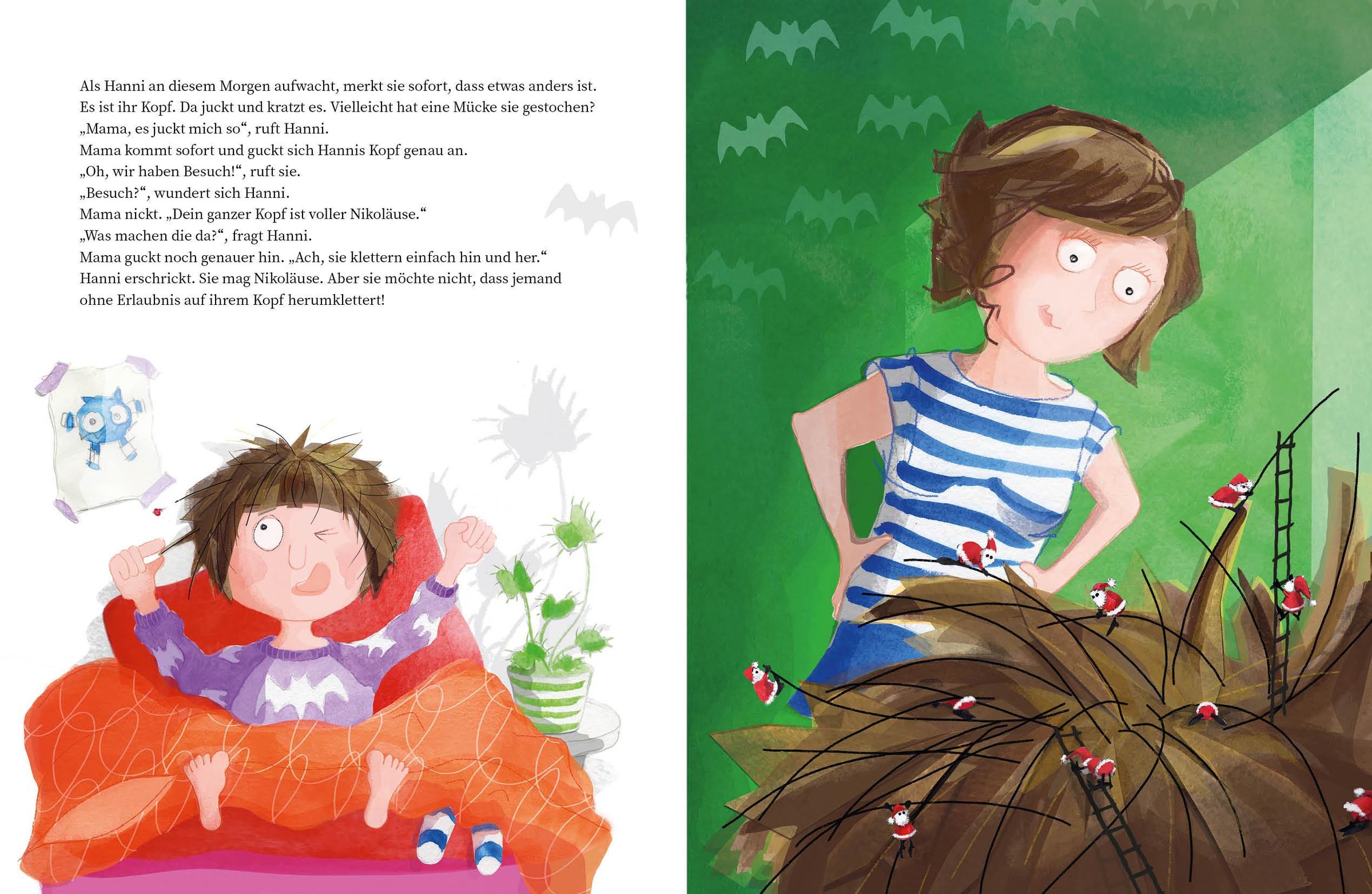 Als Hanni an diesem Morgen aufwacht, juckt ihr Kopf ganz fürchterlich. Ihre Mama stellt fest: Hanni hat Nikoläuse! Aber leider sprechen sie beide kein Nikoläusisch, sodass sie sich nicht mit den roten Männchen verständigen können. Ob Dr. Mertens weiterhelfen kann? Ganz lustig findet Hanni es ja mit den frechen Kerlen ... Und überhaupt - wer kann von sich behaupten, schon einmal Besuch von den Nikoläusen gehabt zu haben?