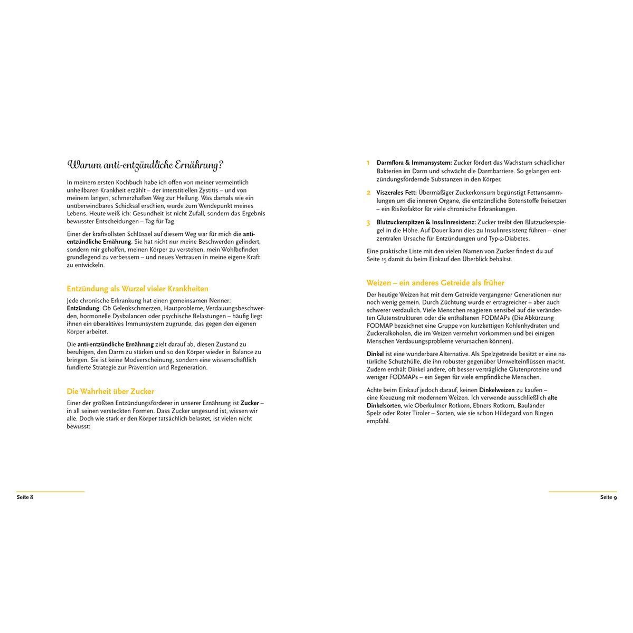 Judith, selbst betroffen von einer chronischen, vermeintlich unheilbaren Erkrankung, hat durch eine konsequent anti-entzündliche Ernährung ihren Weg zurück ins Leben gefunden - mit mehr Leichtigkeit, Energie und Lebensfreude als je zuvor. Mit ihrer persönlichen Geschichte und viel alltagstauglicher Erfahrung begleitet sie dich durch einen 14-Tage-Plan voller kluger Impulse und liebevoller Routinen. Dieser Plan hilft dir, bewusste Entscheidungen für dich und deinen Körper zu treffen: egal, ob du Beschwerden lindern, dich leichter fühlen oder dein Wohlbefinden langfristig stärken möchtest. Dieses Buch ist eine Einladung, deinen Körper bewusst zu unterstützen und neue Kraft zu schöpfen. Hier findest du: