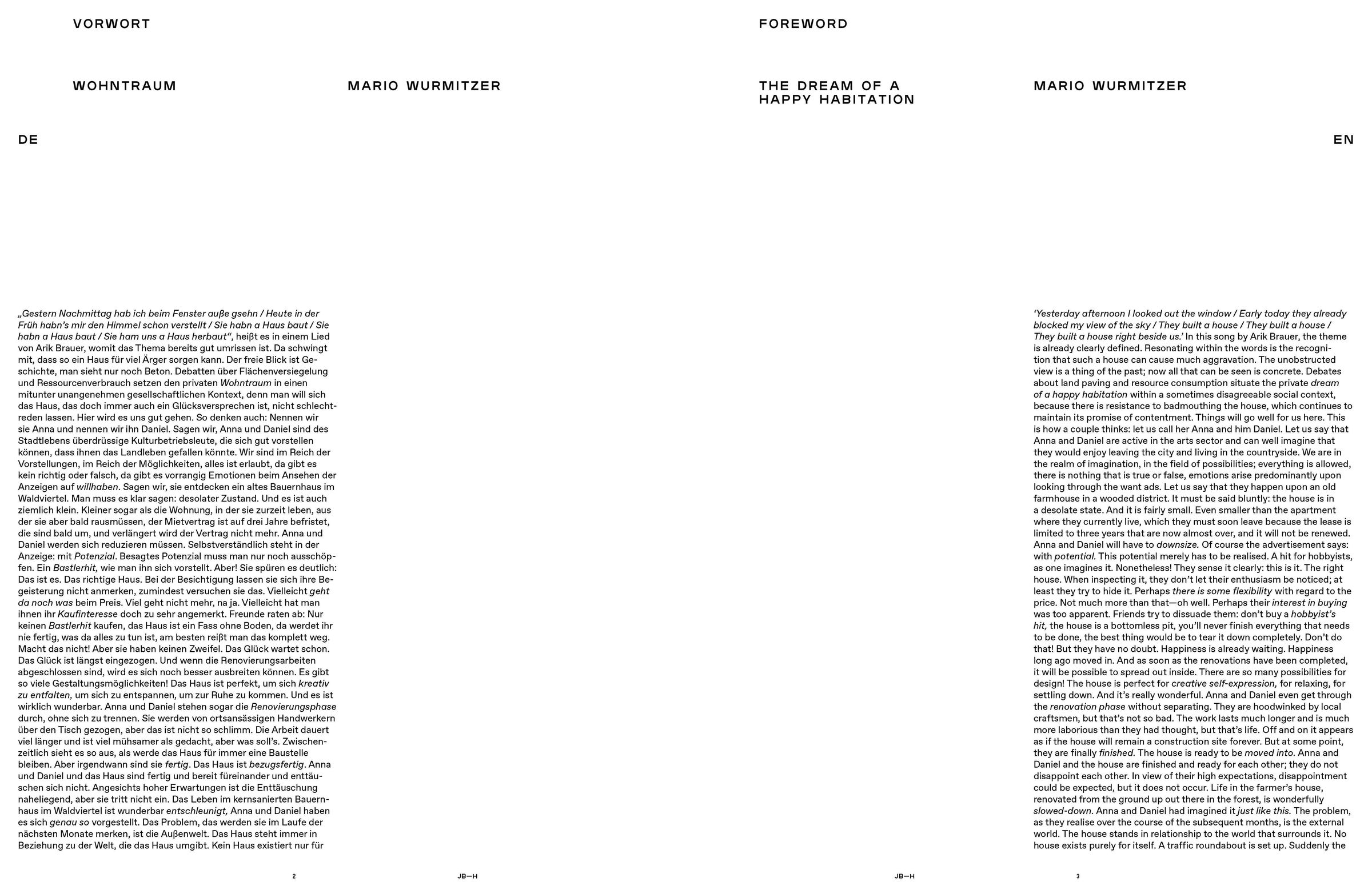 Jürgen Bauer beschäftigt sich mit dem Motiv des Hauses. Reizvoll sind für ihn die starke Symbolik und der Metaphernreichtum des Hauses; - die Bandbreite spiegelt dabei seine künstlerische Variation des Themas und seine Beschäftigung mit gesellschaftlichen Normen und Wertvorstellungen, zuletzt stark unter dem Eindruck von Klimawandel, Flächenverbrauch und Bodenversiegelung. Die Repetition ist ein wichtiges Element seiner Arbeit - ob in der abstrakten Malerei und Grafik oder in seinen minimalistischen Objekten. Die Publikation gibt in 125 Bildern einen Überblick über diese umfassende Werkgruppe. Das literarische Vorwort von Mario Wurmitzer ergänzen Beiträge zu Jürgen Bauers Œuvre von Bettina Siegele, Anna Fliri und Esther Mlenek. Während Bettina Siegele die Verbindung zur Architekturtheorie herstellt, beleuchtet Esther Mlenek das Motiv der Wiederholung und Anna Fliri das Kompositorische von Farbe und Form.