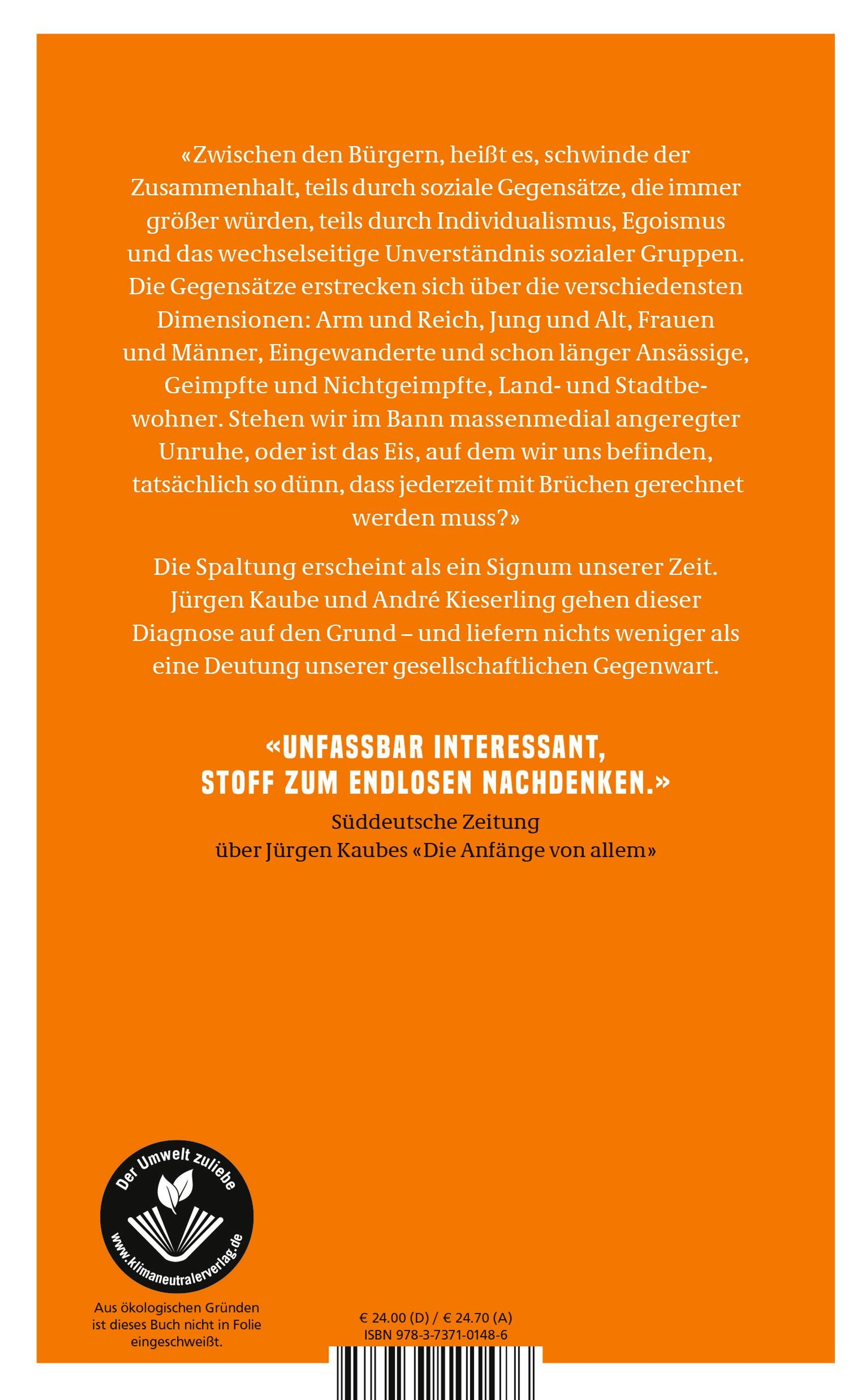 Jürgen Kaube: Die gespaltene Gesellschaft, Gebunden