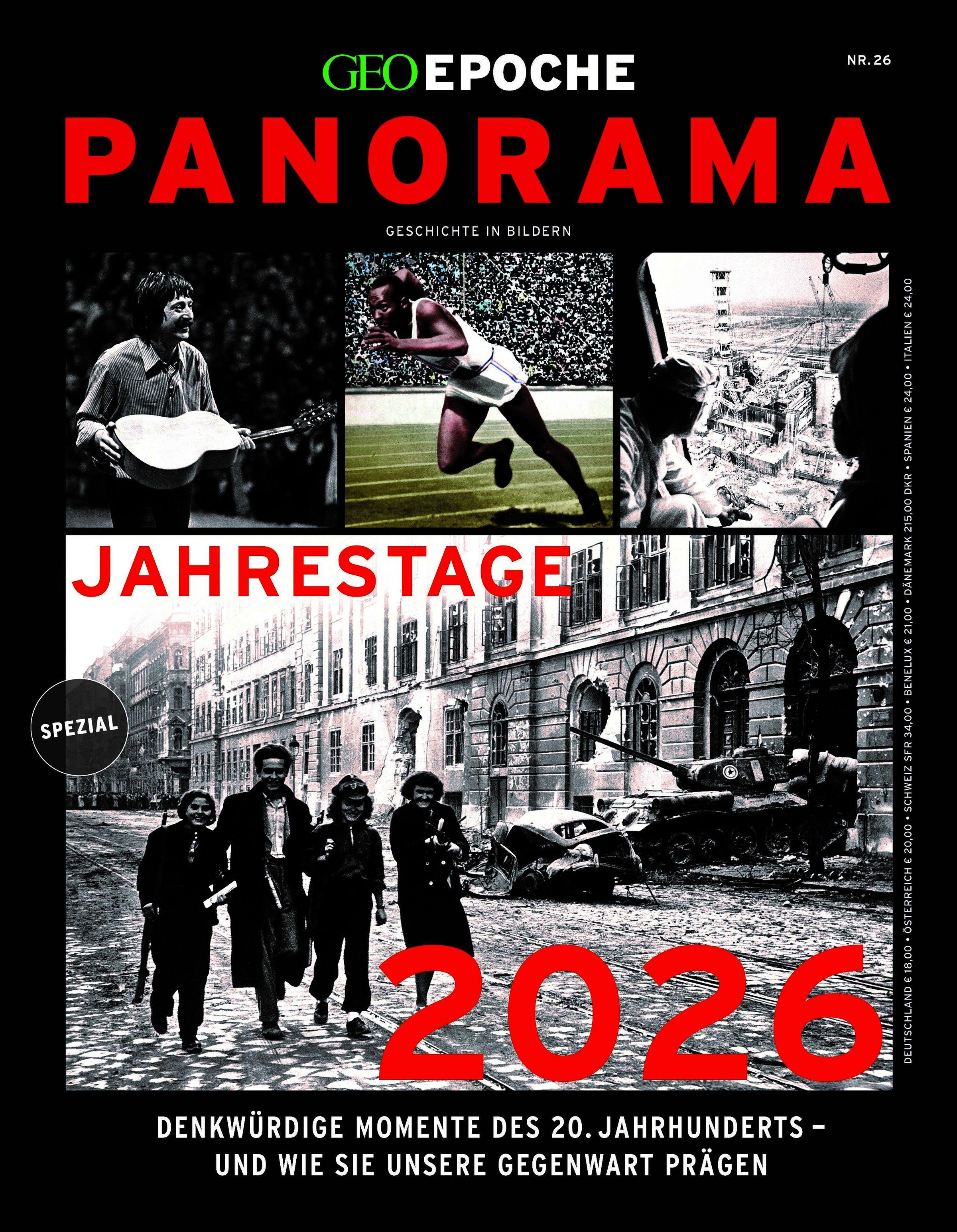 Welche Ereignisse prägten das Kriegsjahr 1916? Wie rappelte sich 1946 das zerstörte Europa wieder auf, zu welchen Protestsongs tanzte die Jugend 1966? Diese Ausgabe von GEOEPOCHE Panorama erinnert an wichtige Begebenheiten des 20. Jahrhunderts, deren runde Jahrestage 2026 anstehen. Faszinierende Fotografien führen zurück in die Zeit, Experten-Interviews bieten Einordnung, etwa zu den Olympischen Spielen in Berlin 1936. Im Zentrum des Hefts steht die Rekonstruktion eines Aufstands, der sich 2026 zum 70. Mal jährt: der Unabhängigkeitskampf der Ungarn gegen die Sowjetunion.