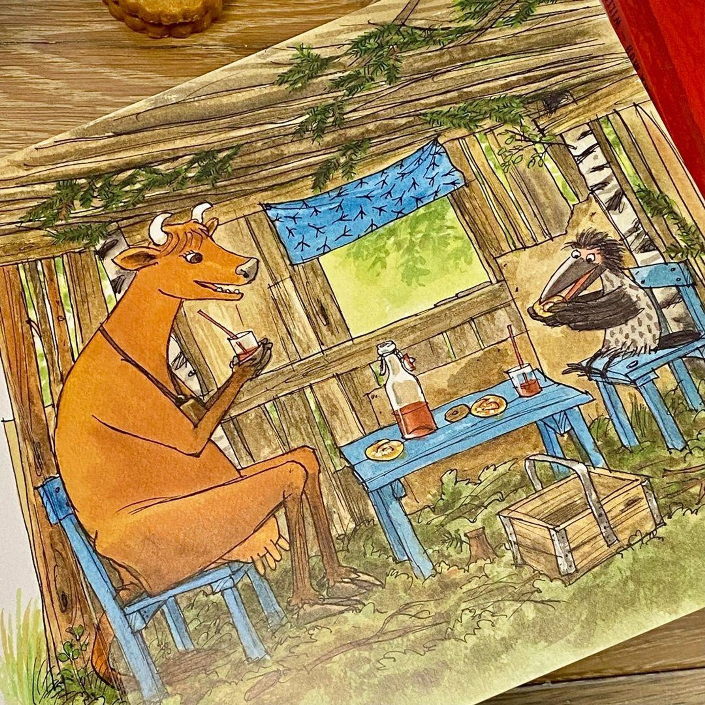 Mama Muh möchte mit ihrer Freundin Krähe spielen. Schlitten fahren, Angeln, Fahrrad fahren - eigentlich könnten die beiden so eine schöne Zeit haben. Doch Krähe ist immer mit ihren Werkeleien beschäftigt und sagt ständig "Später!" und "Warte mal!". Aber irgendwann hat Krähe endlich Zeit für Mama Muh und zeigt ihr, woran sie gearbeitet hat: An einem Ort, um gemeinsam Zeit zu verbringen!