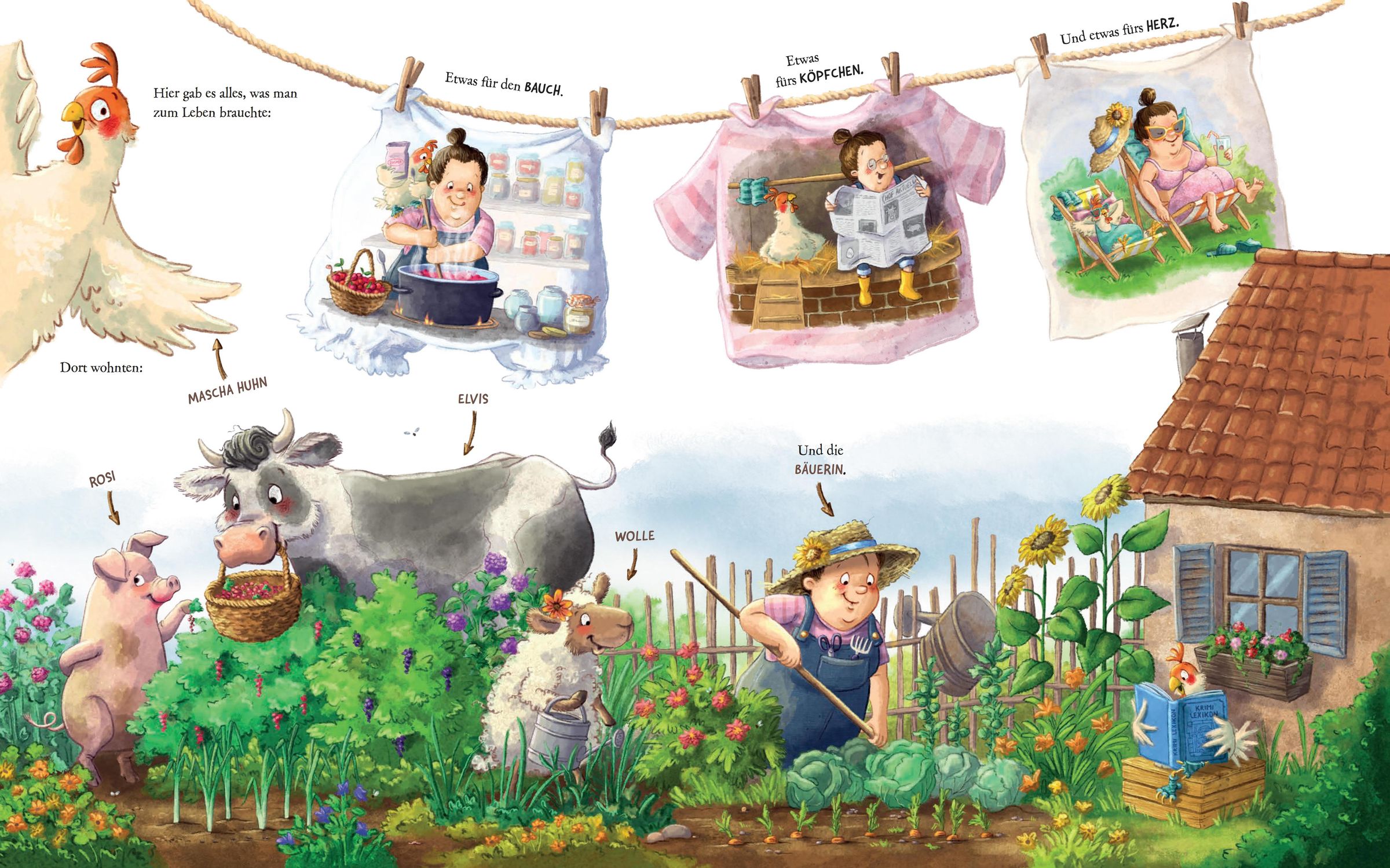 Lustige Wortspiel e und fröhlich-bunte Bilder mit vielen liebevollen Details , die zum Mitsuchen und Verweilen einladen