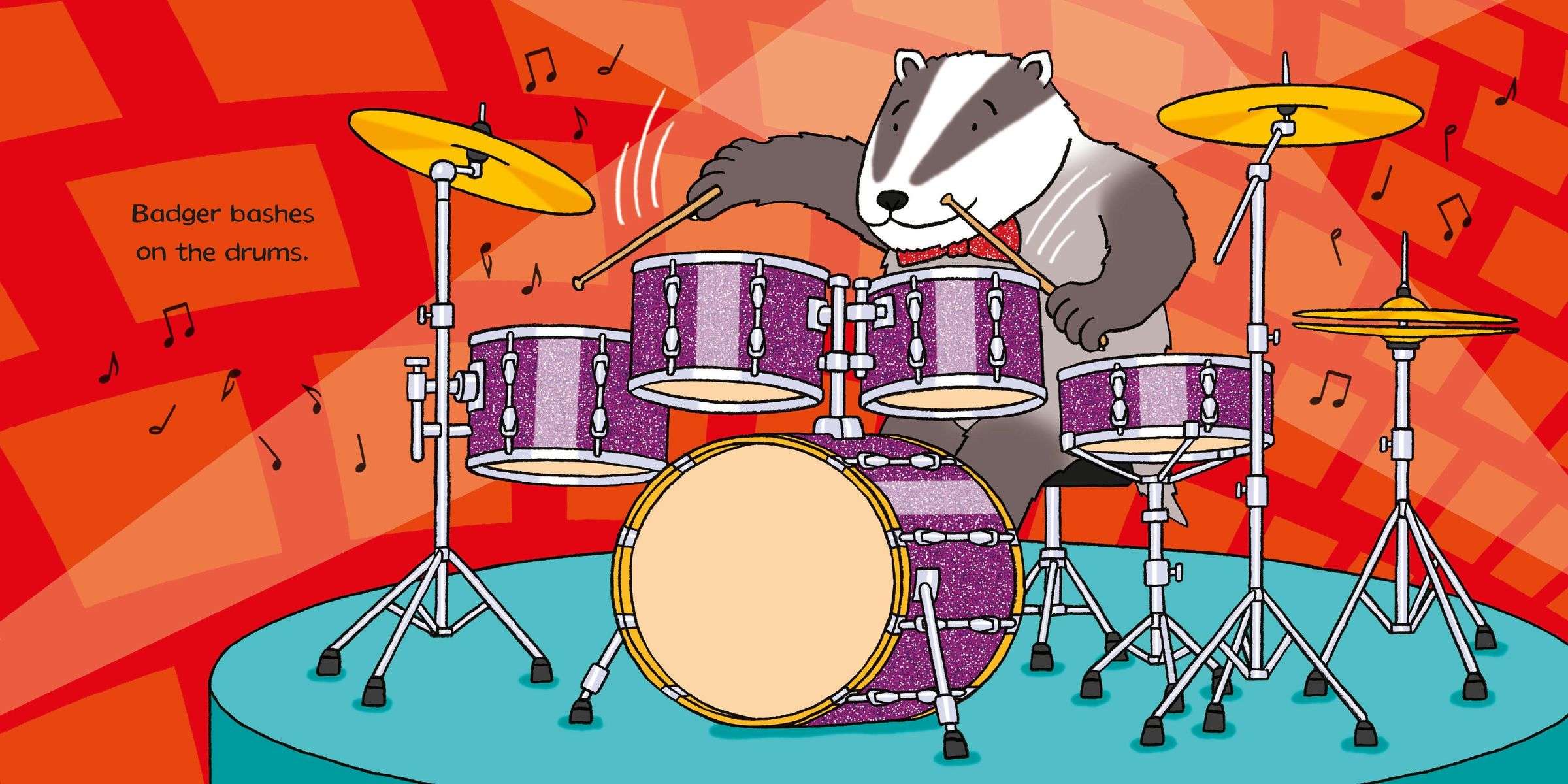 Koala's playing his flute, Badger's bashing away on the drums and Squirrel's strumming on the guitar. Even the smallest toddler will enjoy the wonderfully silly animal antics in this book, so join in and sing and dance along - you've never been to a gig like it!