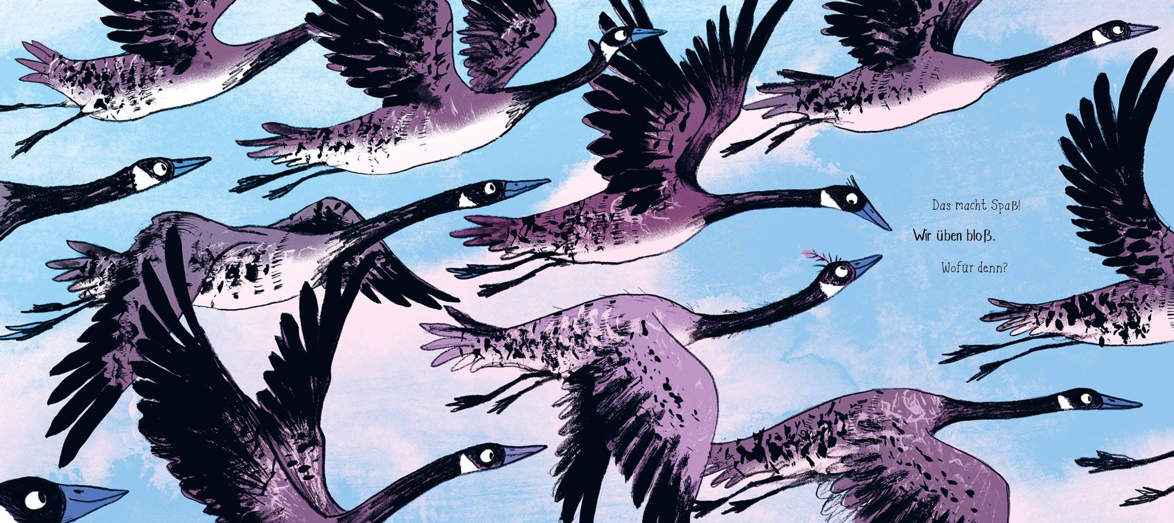 Als der Bär hungrig aus seinem Winterschlaf aufwacht, findet er eine frisch geschlüpfte Gans: Küken kürt ihn kurzerhand zu ihrem Papa, folgt ihm überall hin und macht ihm alles nach. Honig verklebt ihr zwar die Flügel, schmeckt aber fantastisch. Und in der Bärenhöhle schläft es sich wunderbar. Wenn nicht der Bär immer so brummelig und abweisend wäre. Mit der Zeit fügt er sich immer mehr in seine neue Rolle und kümmert sich um das kleine Gänslein. Bis der Herbst kommt und die Gans flügge wird. Erst als sie sich dem großen Gänseschwarm anschließt und in den Süden fliegt, begreift der Bär, was es wirklich bedeutet, Vater zu sein - gut, dass sie sich im Frühjahr wiedersehen.
