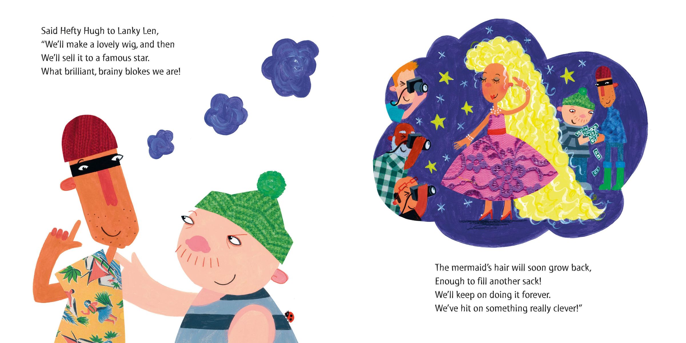 The clever little ladybird is off on a trip to the seaside, but those two bad men, Hefty Hugh and Lanky Len, are up to their wicked ways again. This time they're planning to steal the mermaid's hair and sell it to a famous star. Luckily, the crime-busting ladybird has a clever plan to stop the thieves . . .