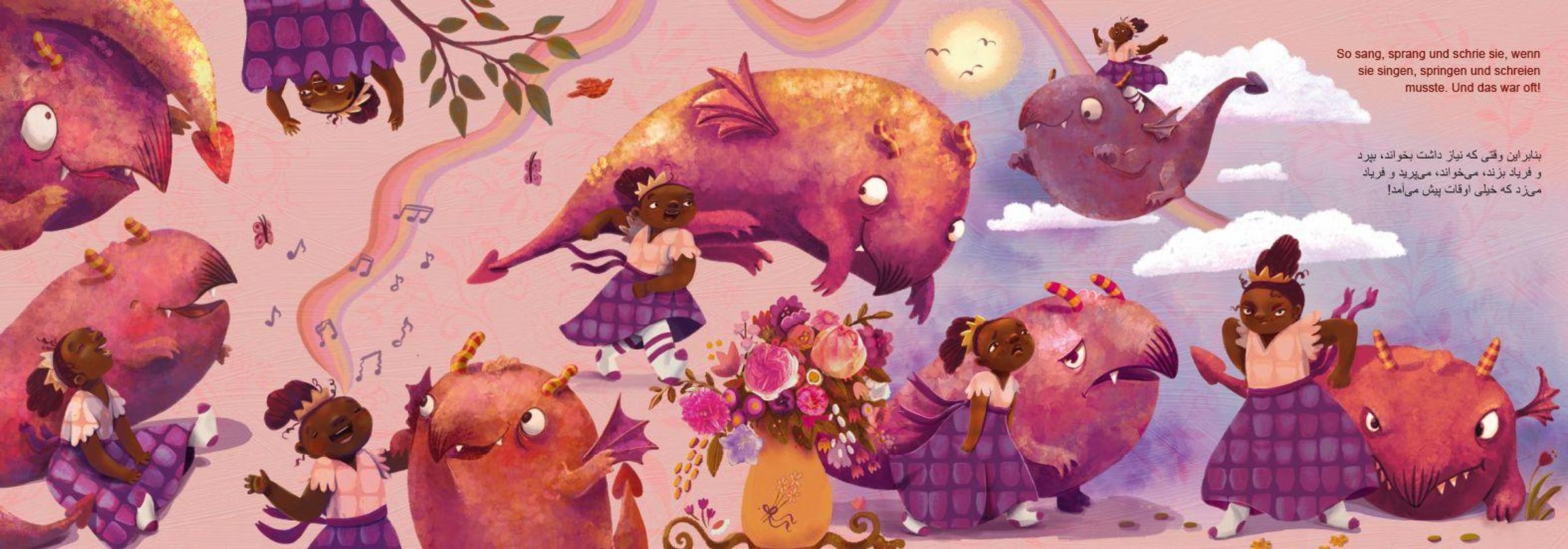 In einem fernen Land lebt ein König, der Stille in seinem Reich wünscht. Seine geliebte Tochter jedoch ist laut, fröhlich und wild - all das, was der König nicht duldet. Nach einem zu stürmischen Spiel sperrt er den Drachen der Prinzessin in einen Käfig, woraufhin sie sehr wütend und sehr still wird. Zu still für den König, der nun erst recht keine Ruhe mehr findet. Ein modernes Märchen über die Gefahr unterdrückter Emotionen und wie schön es ist, mal loszulassen. Die Hörversion der Geschichte wurde von Muttersprachlern gelesen und ist als kostenloser MP3-Download (mit Zugangscode im Buch) verfügbar. Das Buch ist in weiteren Sprachfassungen - immer in Kombination mit Deutsch - erhältlich.
