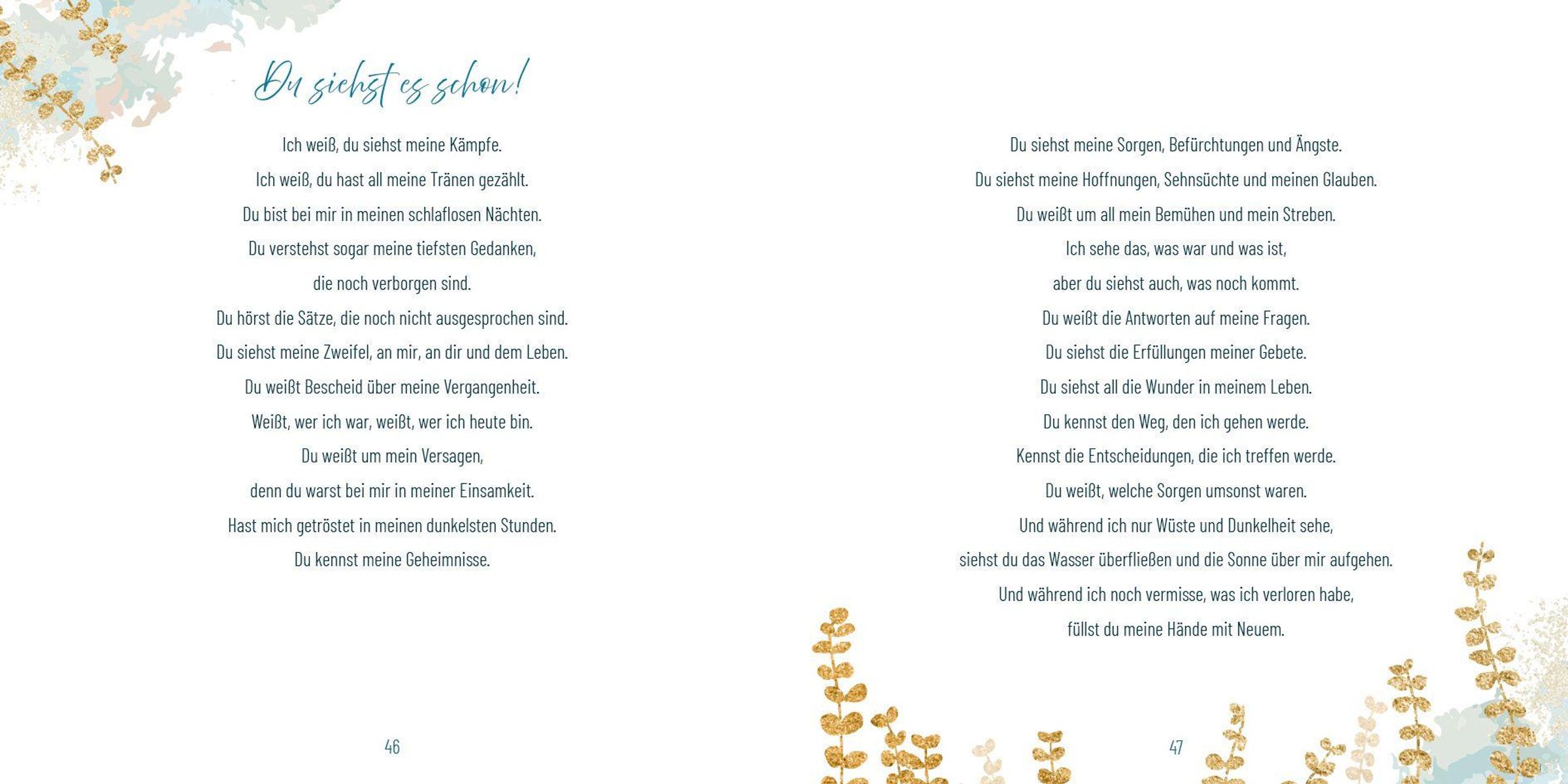 Weißt du eigentlich, wie sehr du von Gott geliebt bist? Dass du mit allem, was dich beschäftigt, zu ihm kommen kannst - auch und gerade an Tagen, an denen nichts zu klappen scheint und du an allem zweifelst? Du darfst dir gewiss sein: Du bist nie allein. Gott sieht dich! Er nimmt dich so an, wie du bist, und hat wunderbare Pläne mit dir.