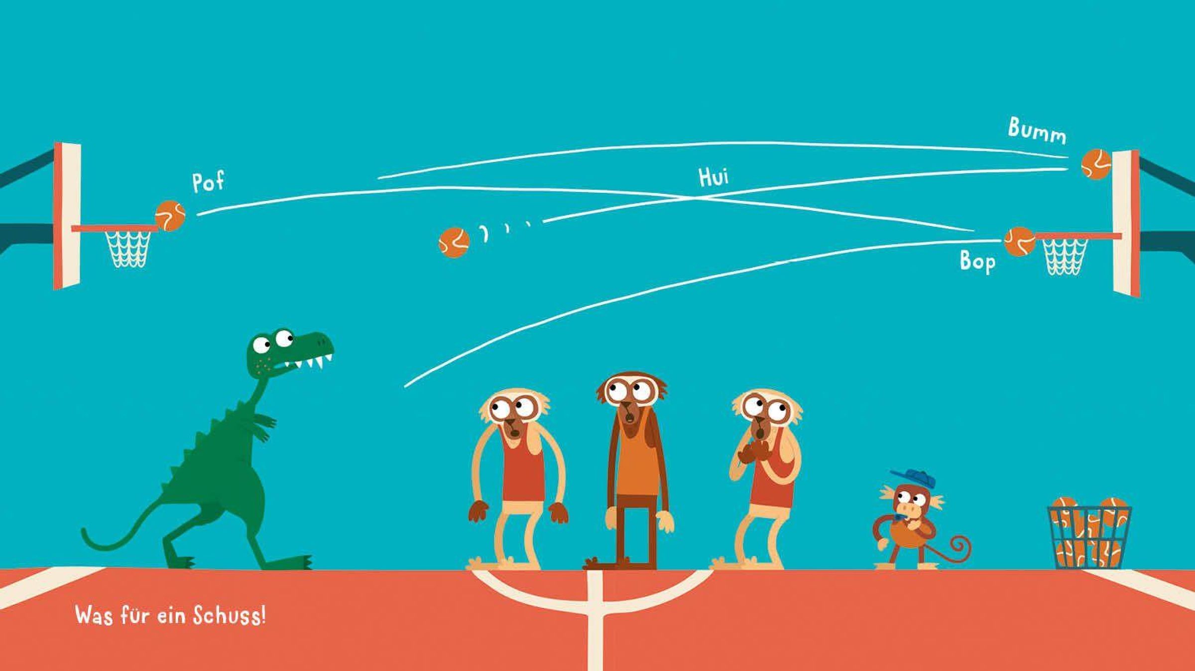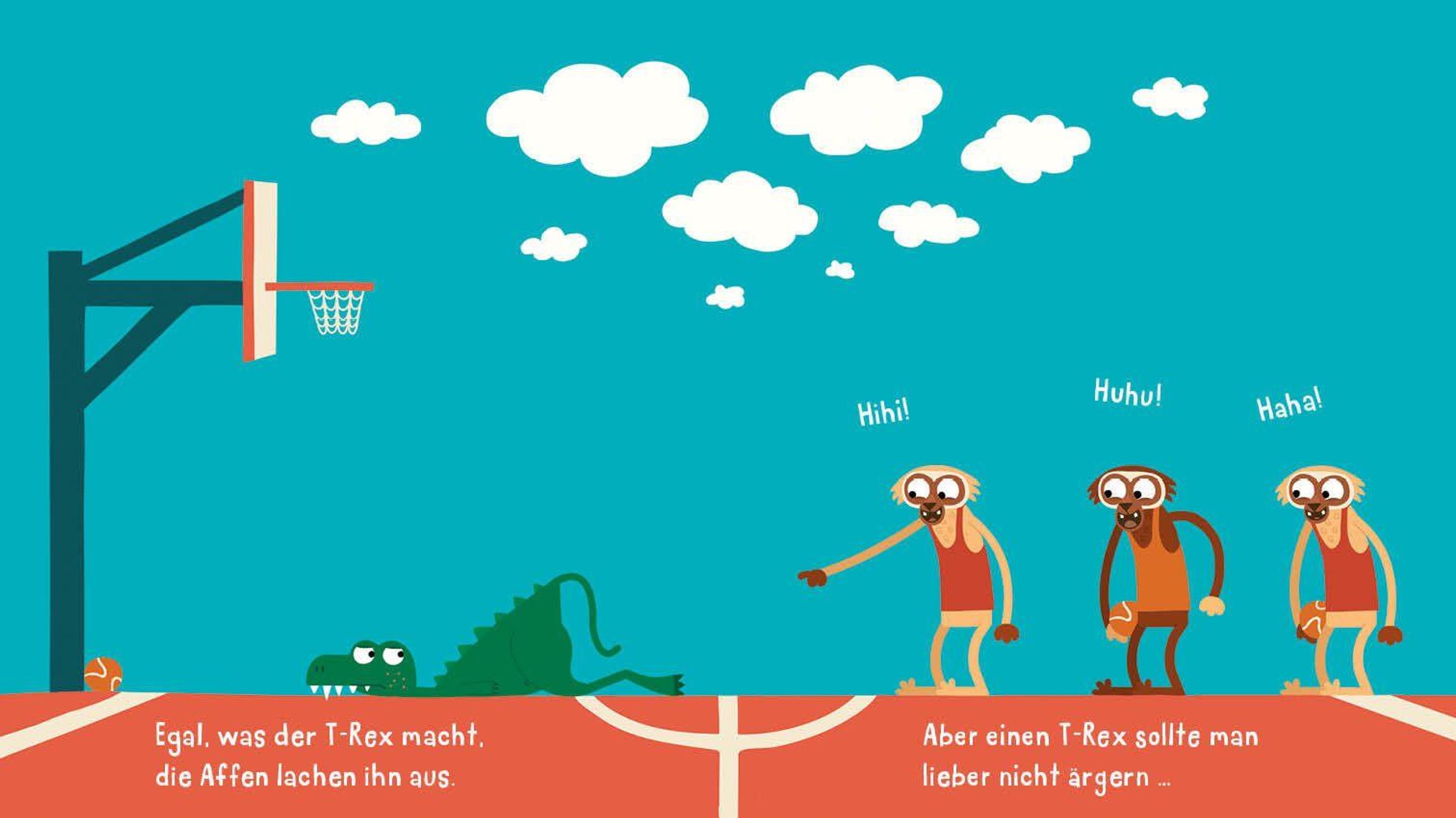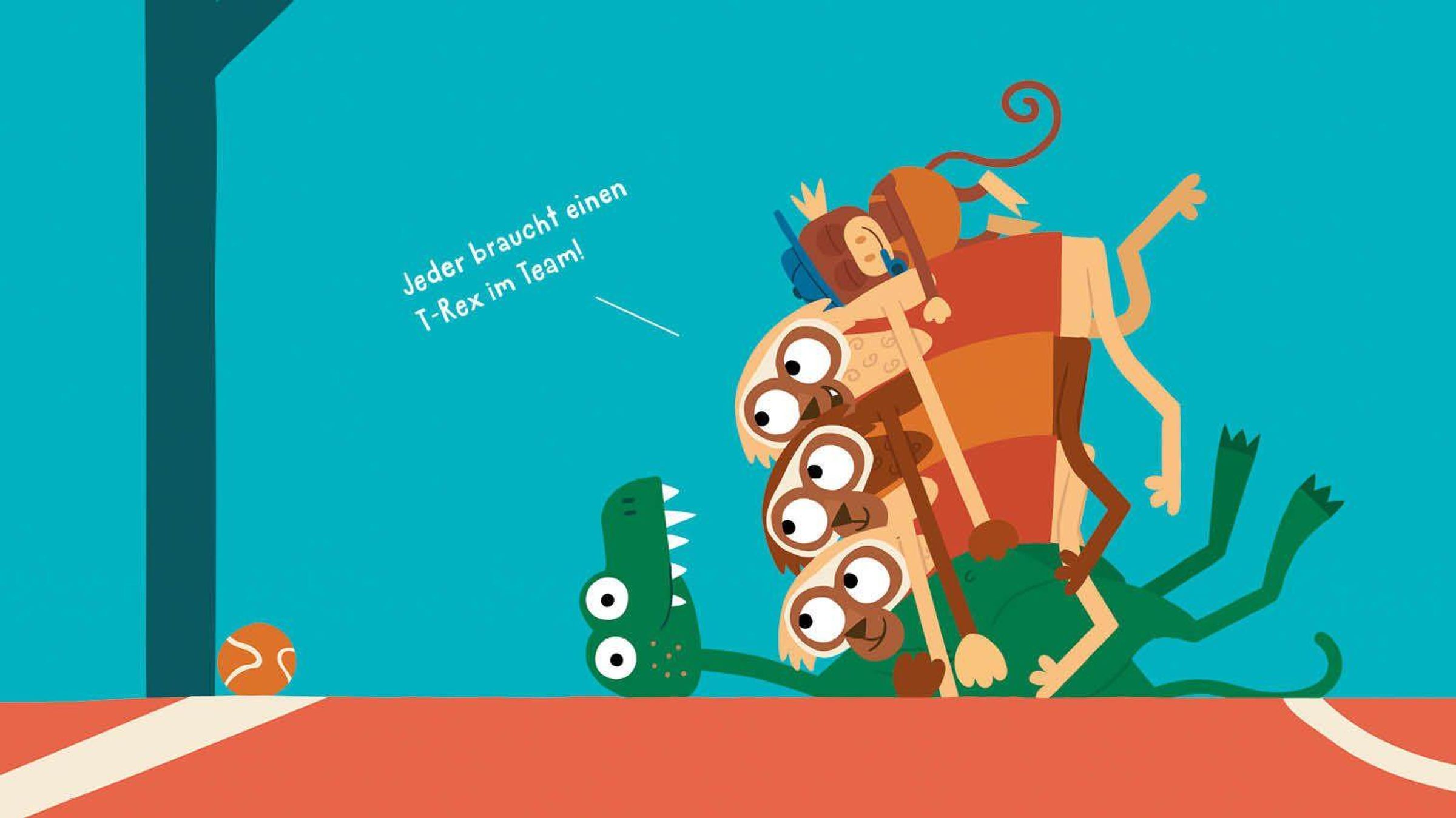 Text: "Animanimals T-REX von Julia Ocker." Illustration: Ein grüner T-Rex beißt in einen Ball., Buch