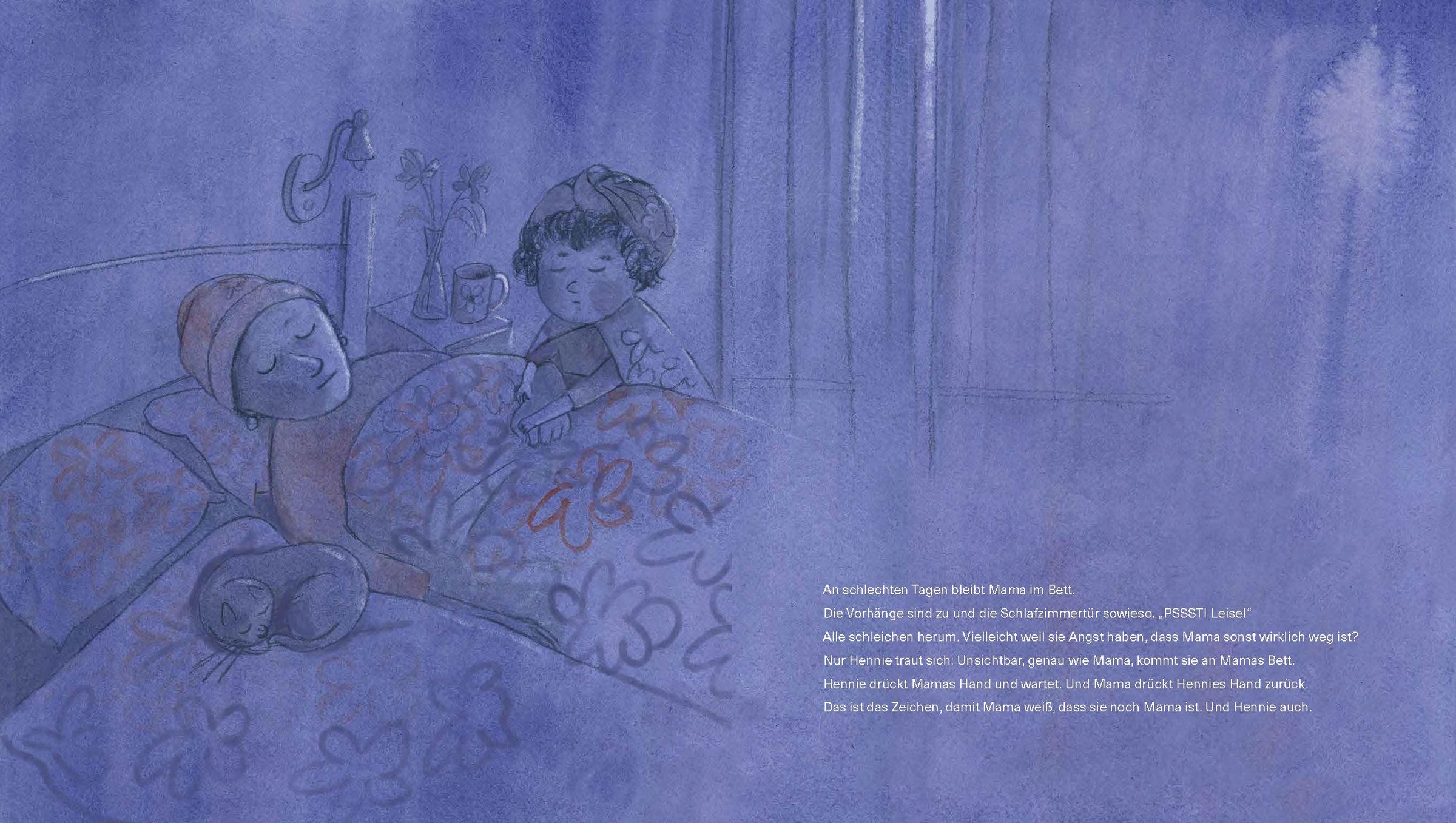 Julia Rosenkranz ist ein starker, ehrlicher Text gelungen, über eine Familie in der Krise und ihren gemeinsamen Weg hindurch. Die Künstlerin Nele Palmtag begleitet die dichte, einfache Geschichte mit warmen, ausdrucksstarken Aquarell- und Buntstiftbildern.