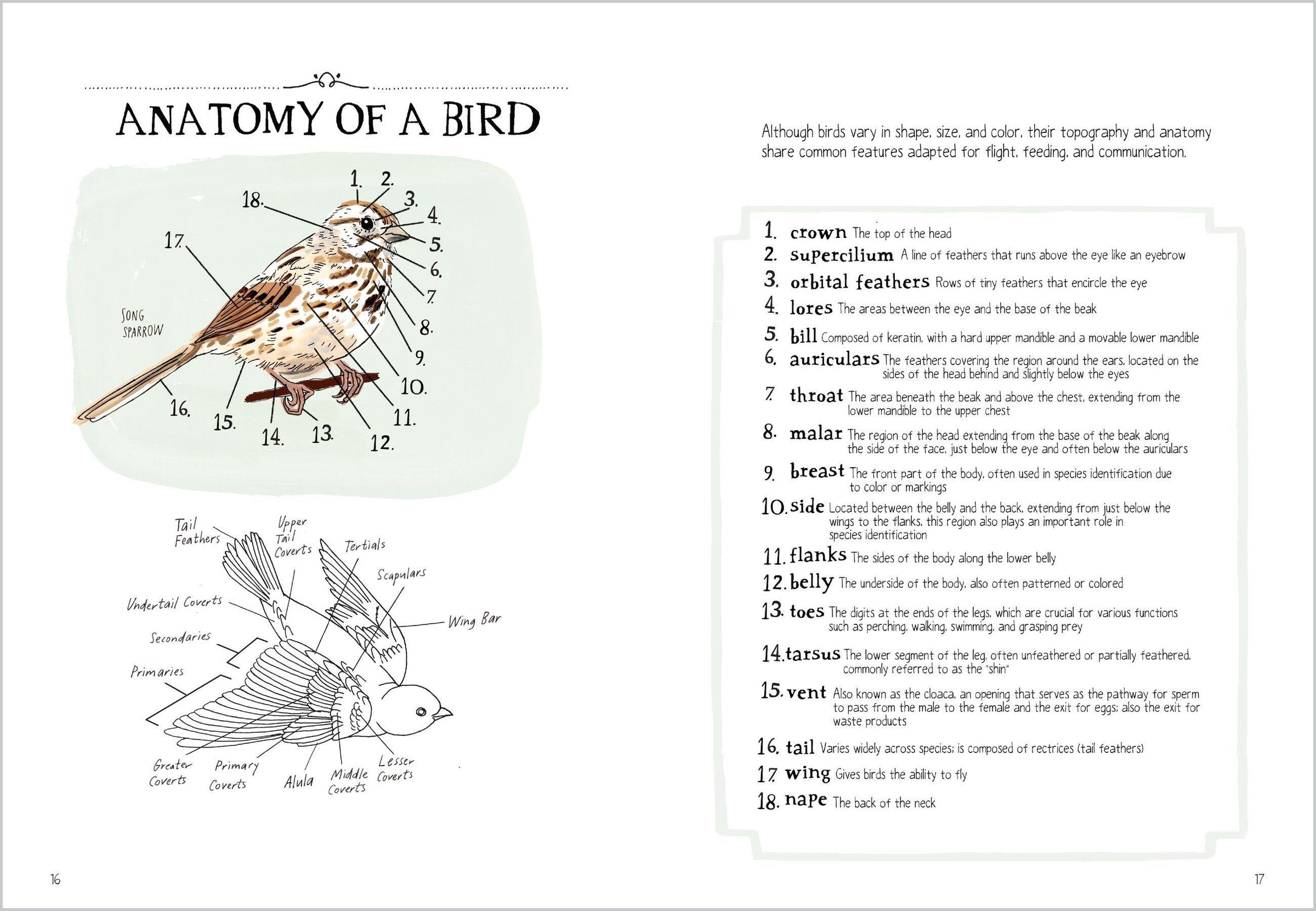 This irresistible illustrated guide will take you around the world to meet the fascinating feathered creatures that populate our planet. From albatrosses that drink sea water and spend months without setting foot on the ground to hummingbirds so small they weigh less than a penny, the bird world is full of astonishing animals. Filled with fascinating information on every aspect of avian life, every page of Bird Anatomy is a delightful glimpse into the wonder of nature. You'll learn how birds fly, build their nests, forage or hunt, and explore some of their most extraordinary behaviors, such as the stunning architecture of a weaverbird's nest or the Bald Eagles' daring courtship dance.