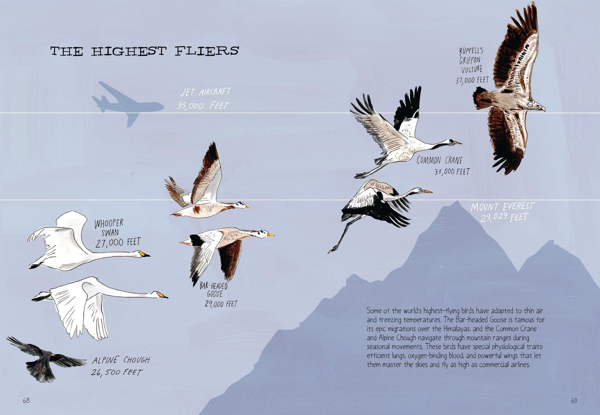 With her signature whimsical style, illustrator Julia Rothman delves into the incredible world of birds, exploring everything from feathers to feeding, mating rituals to molting, and introducing readers to birds across the globe.