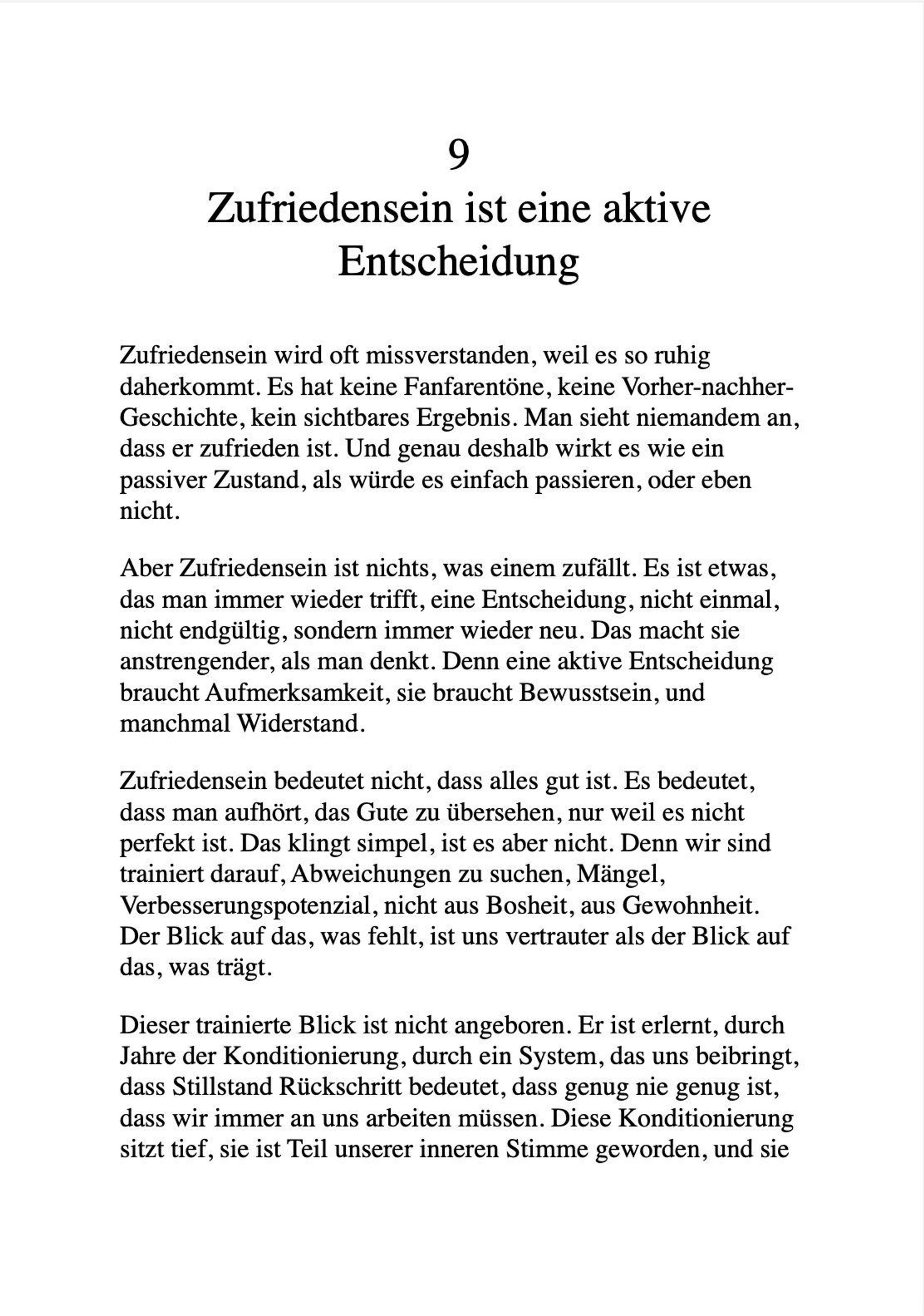 Stattdessen schaut Julia Weber genau hin: auf den inneren Antreiber, auf die Gewohnheit der Unzufriedenheit, auf die leise Selbstsabotage durch Vergleichen und auf die Angst, stehen zu bleiben. Sie zeigt, warum Zufriedensein so oft mit Aufgeben verwechselt wird - und warum genau das ein Irrtum ist.