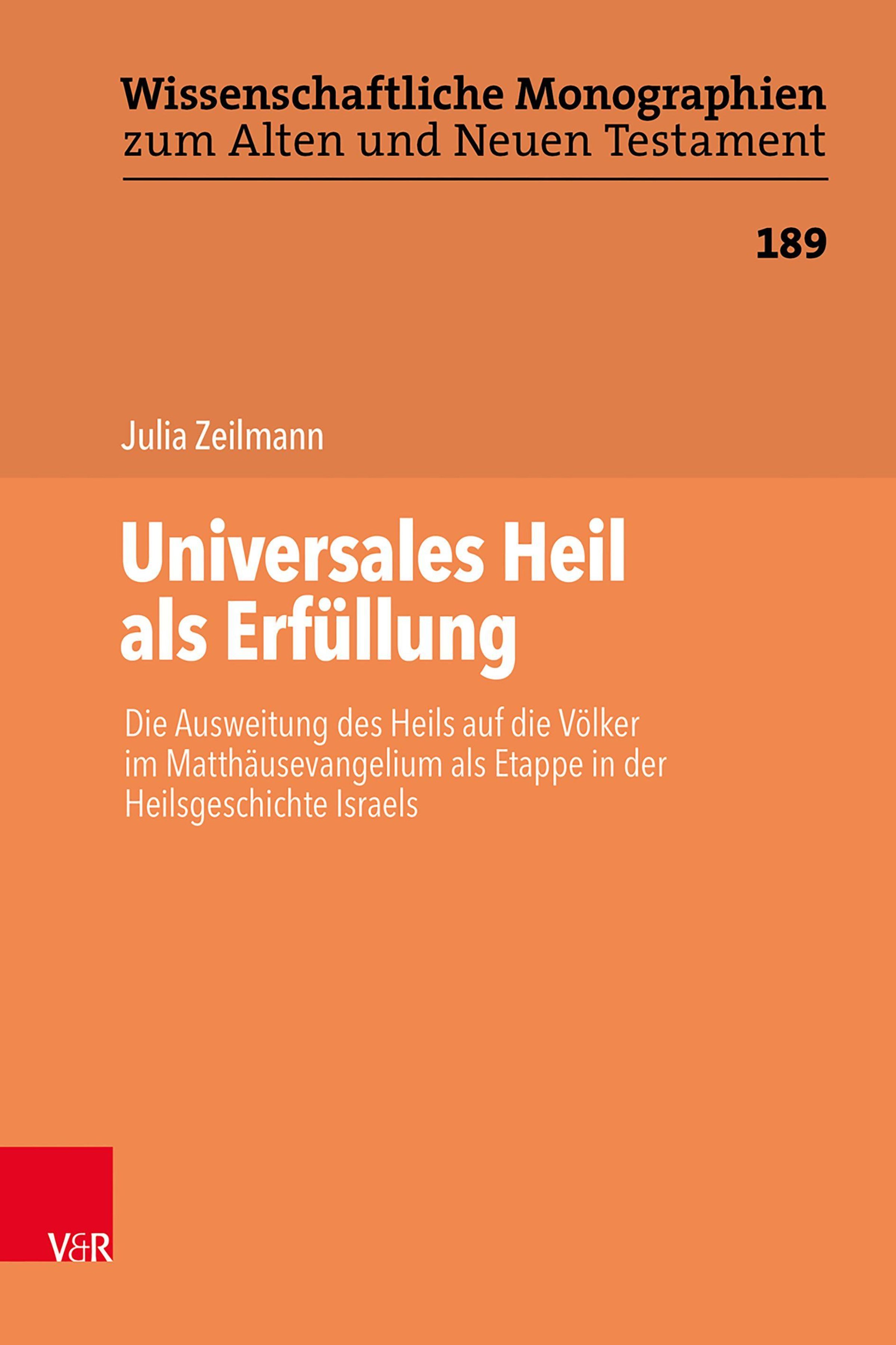 In dieser Studie vertritt Julia Zeilmann die These, dass sich im Matthäusevangelium mit Jesu Wirken erfüllt, was Gott Israel verheißen hat: Im Zuge der endzeitlichen Zuwendung Gottes zu Israel, die das Matthäusevangelium mit Jesu Auftreten als gekommen ansieht, erreicht das Heil alle Völker. Im Hintergrund stehen dabei universal ausgerichtete Verheißungen wie Gen 12, 3; Jes 56; 66. Jesus ruft Israel in seine Rolle als Licht der Welt (vgl. Mt 5, 14). Obwohl die Mehrheit in Israel diese Rolle nicht annimmt, vertritt das Matthäusevangelium nicht die Meinung, dass Israel verworfen wird und das Heil anstelle Israels den nichtisraelitischen Völkern zukommt, sondern differenziert innerhalb Israels nach dem Kriterium der Annahme oder Ablehnung Jesu. Dieses Kriterium ermöglicht den Gedanken, dass Israeliten und Menschen aus anderen Völkern gleichermaßen zum Heil kommen können, indem sie Jesus annehmen und die Tora in Jesu Auslegung halten, da nicht die ethnische Herkunft entscheidet, wer zum Gottesvolk gehört, sondern das Verhalten.