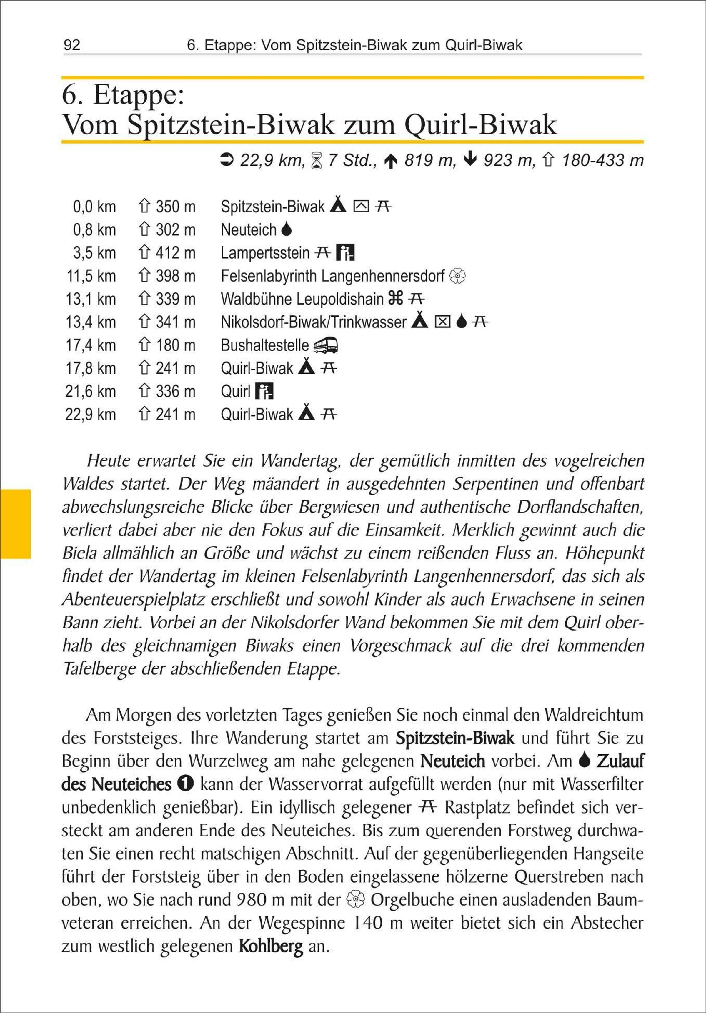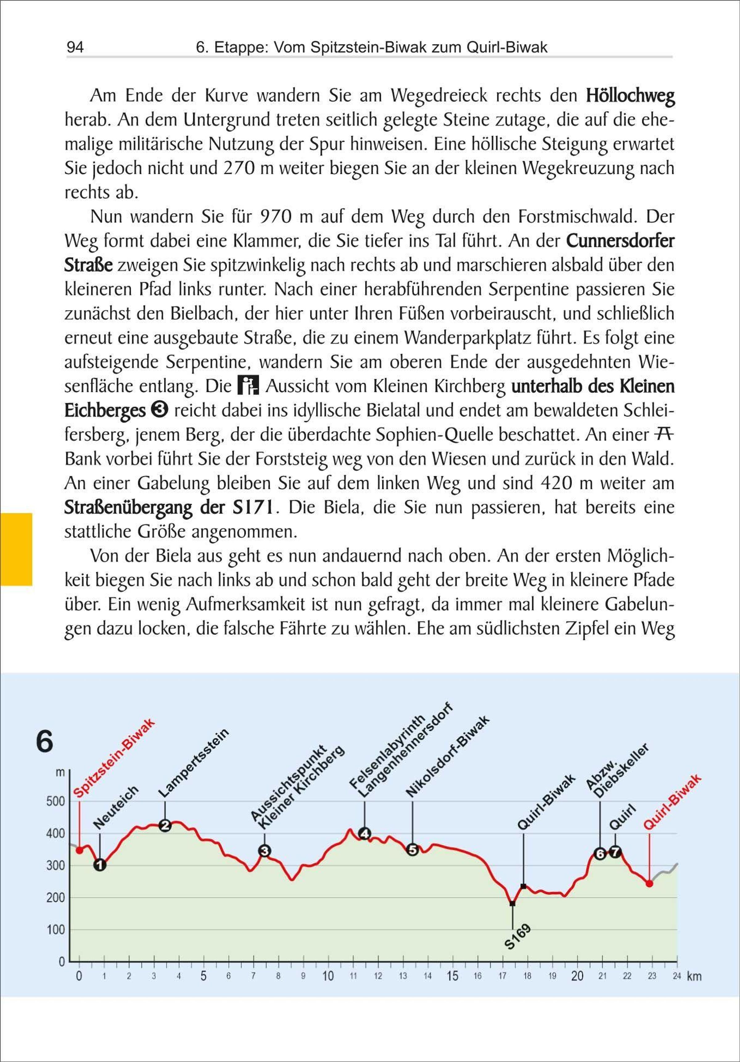 Zerklüftete Felswelten, märchenhafte Waldlandschaften und versunkene Orte: Das Elbsandsteingebirge, seit jeher bei Kletternden beliebt, zieht mit den zahllosen surreal anmutenden Gesteinstürmen immer mehr Wandernde in seinen Bann. Auf den 105 km des Weitwanderweges Forststeig durchkämmen Sie die ausdrucksstarke Landschaft des Mittelgebirges: ob über ausgesetzte Pfade hin zu verschlungenen Waldhütten oder durch verwinkelte Felspassagen und Irrgassen aus ausgetretenem Gestein. Die Grenzwanderung zwischen Deutschlands wildem Osten und dem sagenumwobenen West-Tschechien wartet mit Geheimnissen und Entdeckungen an jeder Ecke auf. Der Forststeig lädt zu einer atmosphärischen Wildniswanderung ein, die in Deutschland seinesgleichen sucht: Zahlreiche einsame Biwakplätze sowie verlassene, urige Selbstversorgerhütten erlauben, die Nacht abseits der Zivilisation an dem schroffen Gestein und in den dichten Wäldern an den hohen Tafelbergen zu verbringen. Wer braucht da noch die beschwerliche Reise nach Kanada ... Dieser Wanderführer bietet Ihnen alle wertvollen Informationen, die Sie für eine gute Vorbereitung für den Forststeig benötigen. Neben nützlichen Tipps zur Wanderzeit, den Wanderbedingungen und zahlreichen Abstechern zu versteckten Höhlen und entlegenen Aussichtspunkten hält das Buch Empfehlungen zu den einzelnen Zelt- und Hüttenübernachtungen sowie zur notwendigen Wasserversorgung auf der Trekkingroute bereit. Auch wer mit wenig Gepäck wandern möchte, kommt auf seine Kosten - alternative Etappen werden zusätzlich aufgezeigt, sodass auch in Unterkünften übernachtet werden kann. Der Wanderführer zum Forststeig wird mit seiner vollwertigen Etappenbeschreibung zum unerlässlichen Begleiter in den tiefen Schluchtwäldern vor Ort. Ergänzt wird die Wegbeschreibung mit Karten und Höhenprofilen sowie GPS-Tracks zum Download.