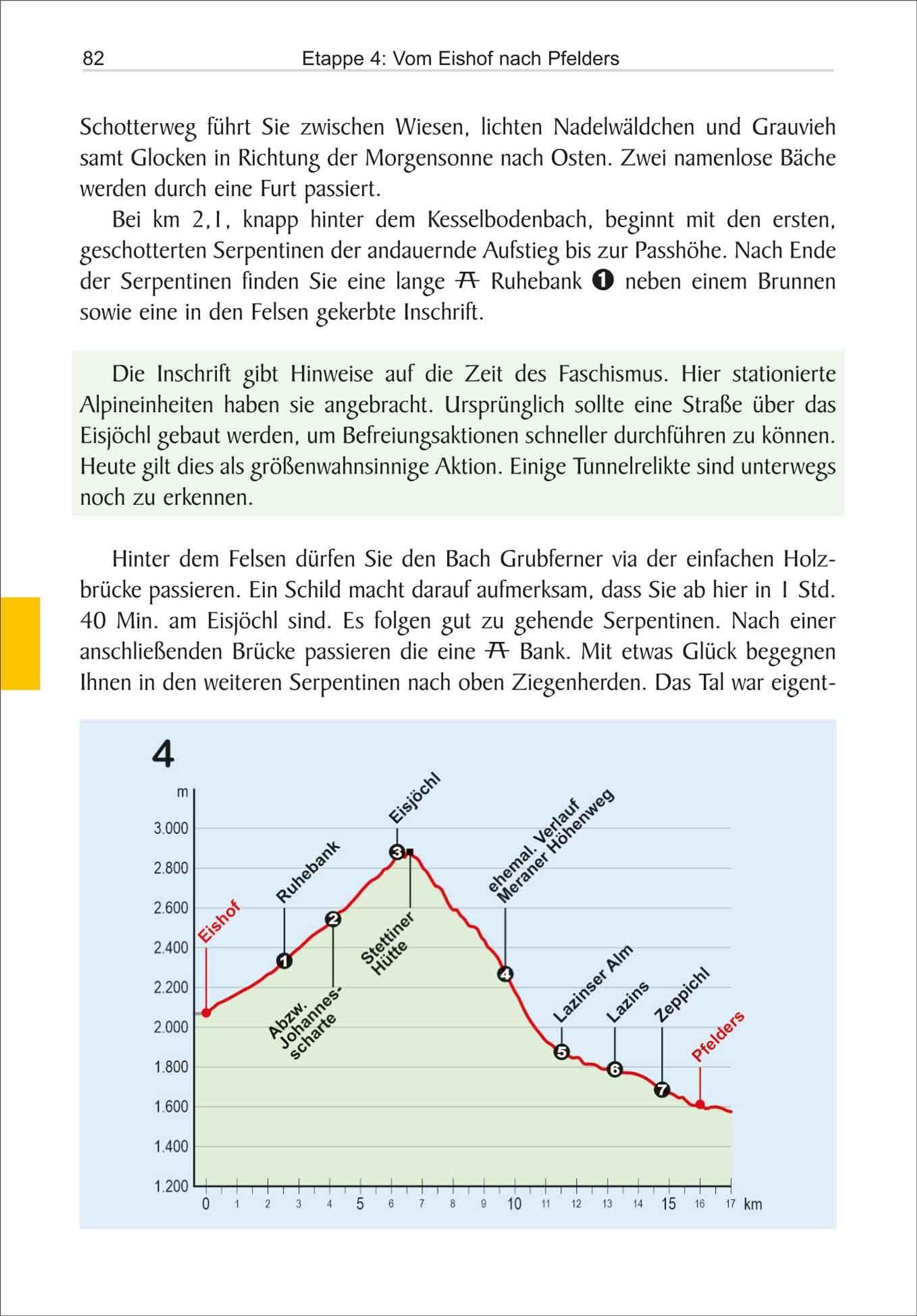 Auf dem Meraner Höhenweg wandern Sie ca. 95 km entlang von Kaskaden und Wasserfällen, mit Weitblicken auf Südtirols tief gekerbte Täler und schneebedeckte Gipfel. Durch den Zuweg ab Meran und zwei lohnenswerte Extraetappen kann der Höhenweg auf 135 km verlängert werden. Der Weg bietet alpines Flair, reiche Flora und Fauna sowie alte Bergalmen mit bäuerlicher Küche. Mit dem hohen Abwechslungsreichtum zählt er zu den europäischen Spitzen-Weitwanderwegen.