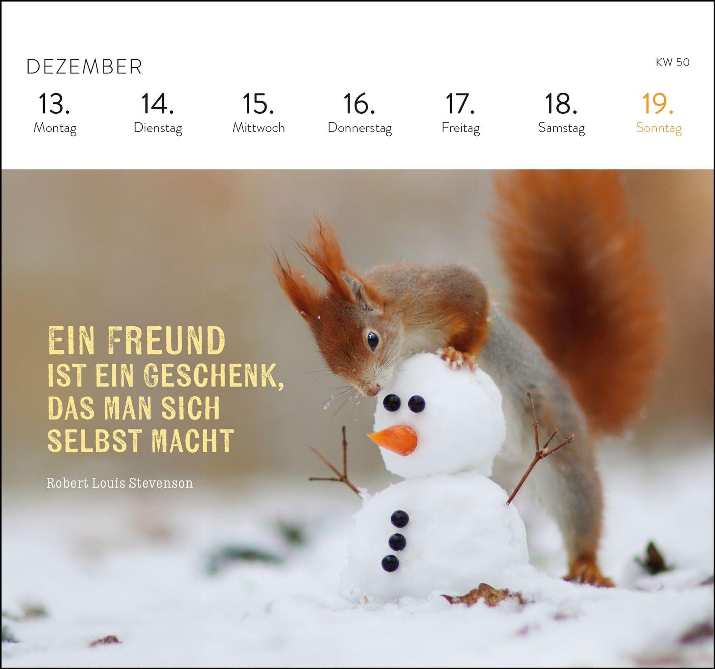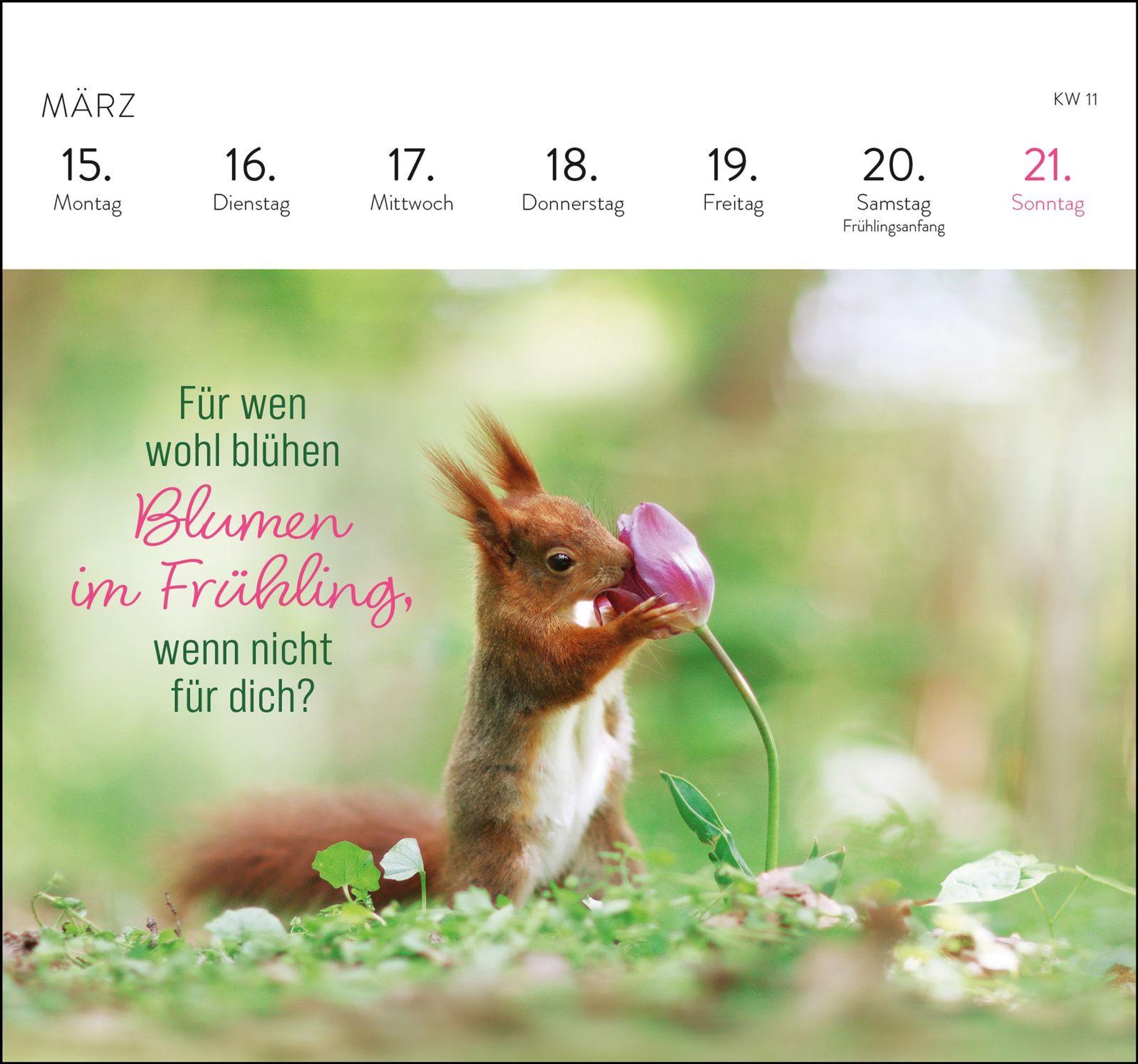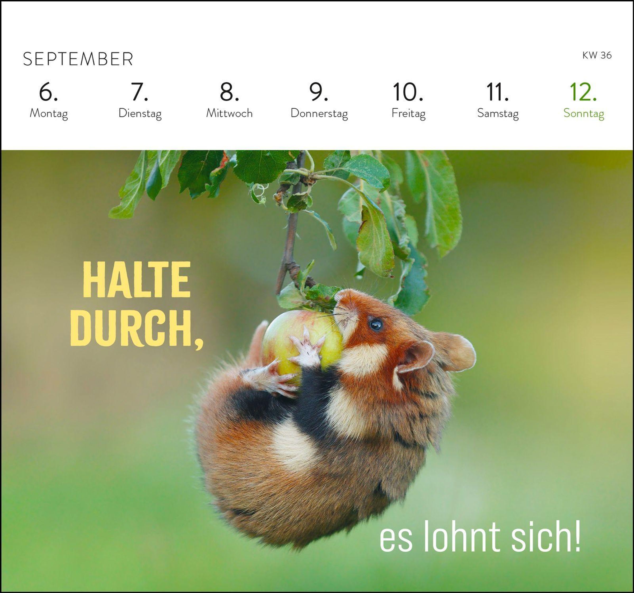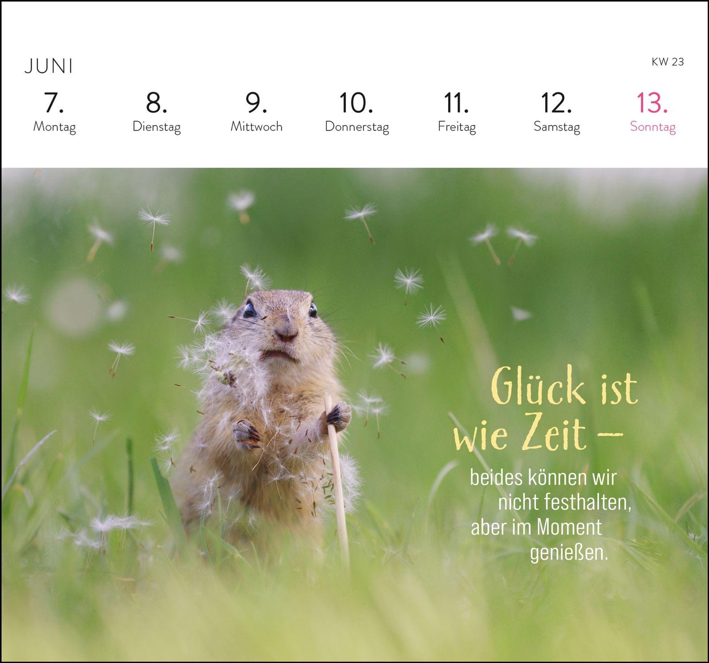 Eine Extra-Portion Glück gefällig? Dieser Postkartenkalender erinnert mit seinen zuckersüßen Tierfotos von Maus, Eichhörnchen & Co. Tag für Tag daran, dass sich das große Glück manchmal auch in den kleinen Details versteckt. Randvoll mit Motivation und Inspiration bescheren die kleinen Glücksbringer jede Woche einen neuen "awww"-Moment.