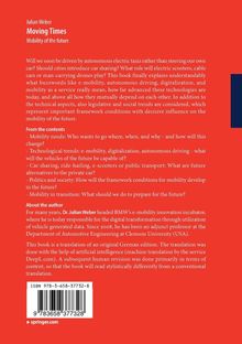 Will we really soon no longer be sitting behind the wheel of our own car, but will only be taken to our destination by driverless electric taxis? Should cities introduce car sharing? What role will electric scooters, cable cars or man-carrying drones play in the mobility systems of major cities? This book finally explains in a generally understandable way what is really behind buzzwords such as electric mobility, autonomous driving, digitalization and mobility services such as car sharing or ride-hailing, how far advanced these technologies are today, and above all in what relationships and dependencies they are to each other. In addition to the technical aspects, the legislative and social trends are also considered, which are important framework conditions that will have a decisive influence on the mobility of the future.