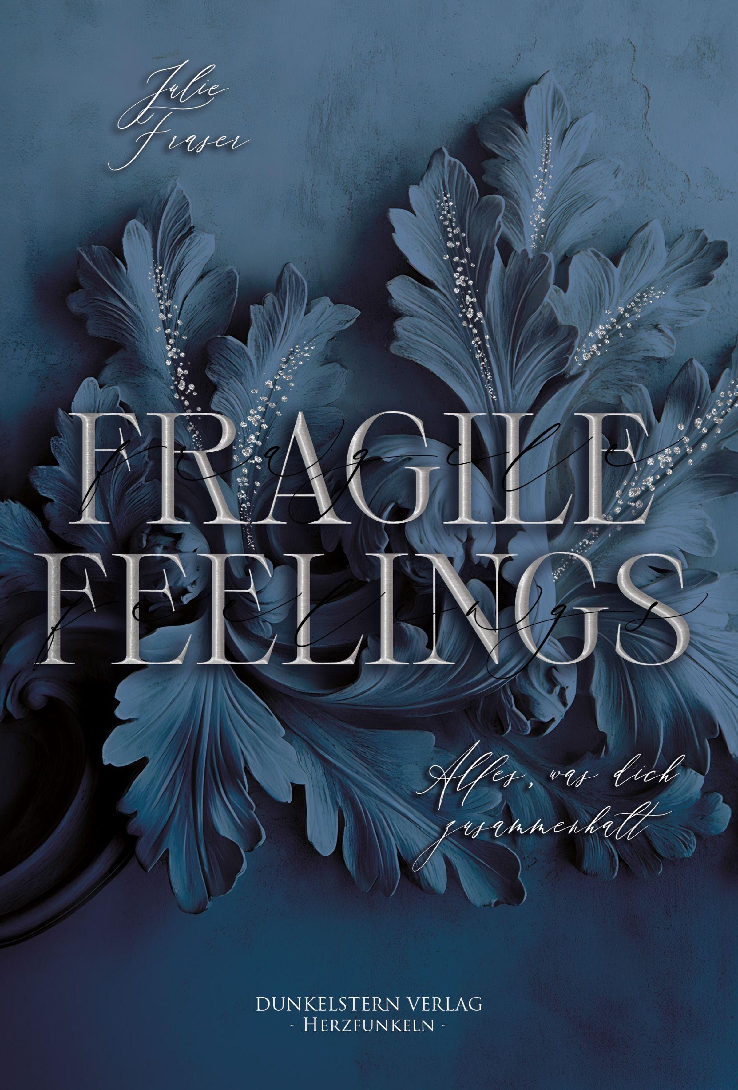„Julie Fraser“, „Fragile Feelings“, „Alles, was dich zusammenhält“, Dunkelblaue Blätter mit silbernen Verzierungen., Buch