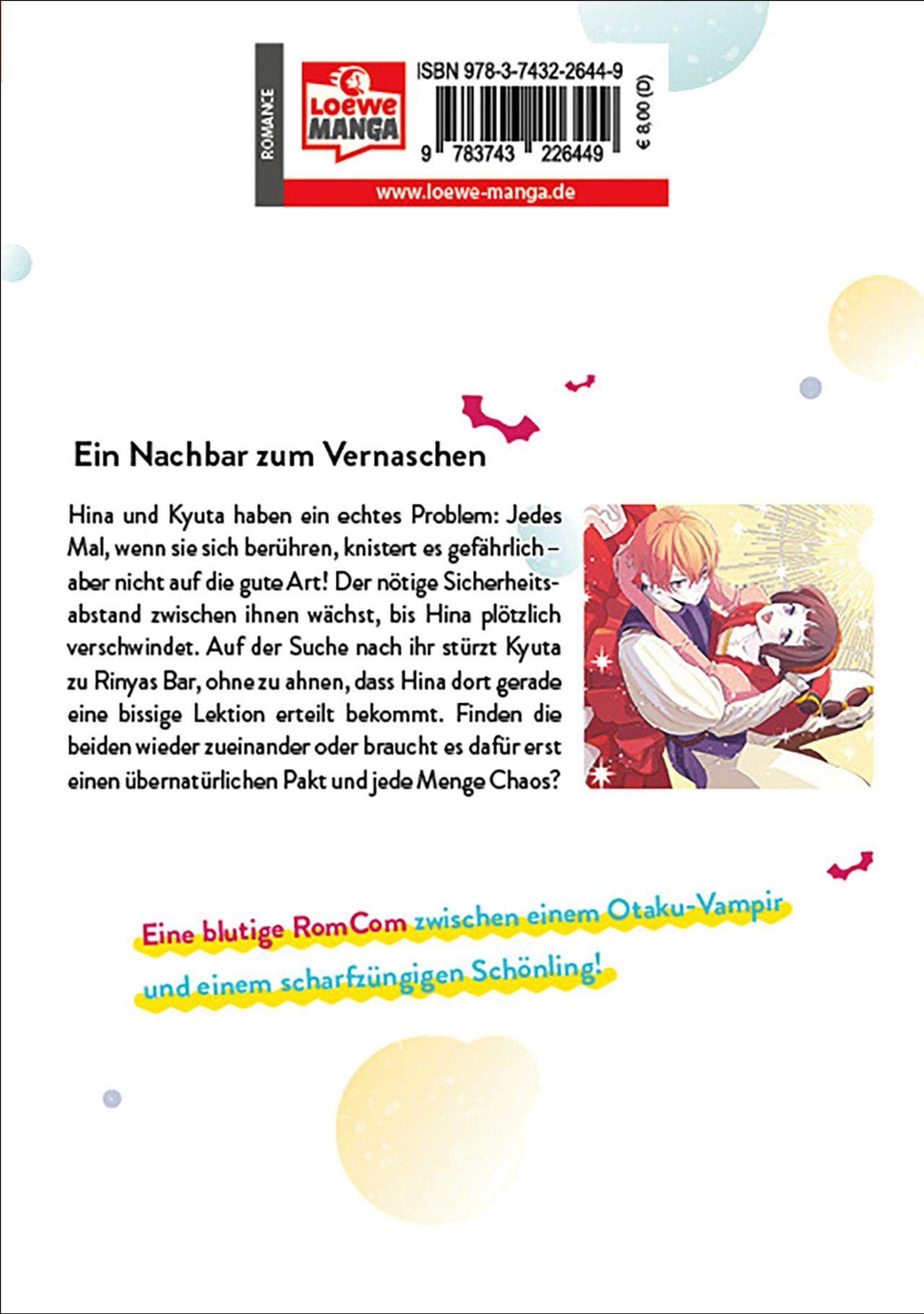 Ein Nachbar zum Vernaschen Hina und Kyuta haben ein echtes Problem: Jedes Mal, wenn sie sich berühren, knistert es gefährlich - aber nicht auf die gute Art! Der nötige Sicherheitsabstand zwischen ihnen wächst, bis Hina plötzlich verschwindet. Auf der Suche nach ihr stürzt Kyuta zu Rinyas Bar, ohne zu ahnen, dass Hina dort gerade eine bissige Lektion erteilt bekommt. Finden die beiden wieder zueinander oder braucht es dafür erst einen übernatürlichen Pakt und jede Menge Chaos?