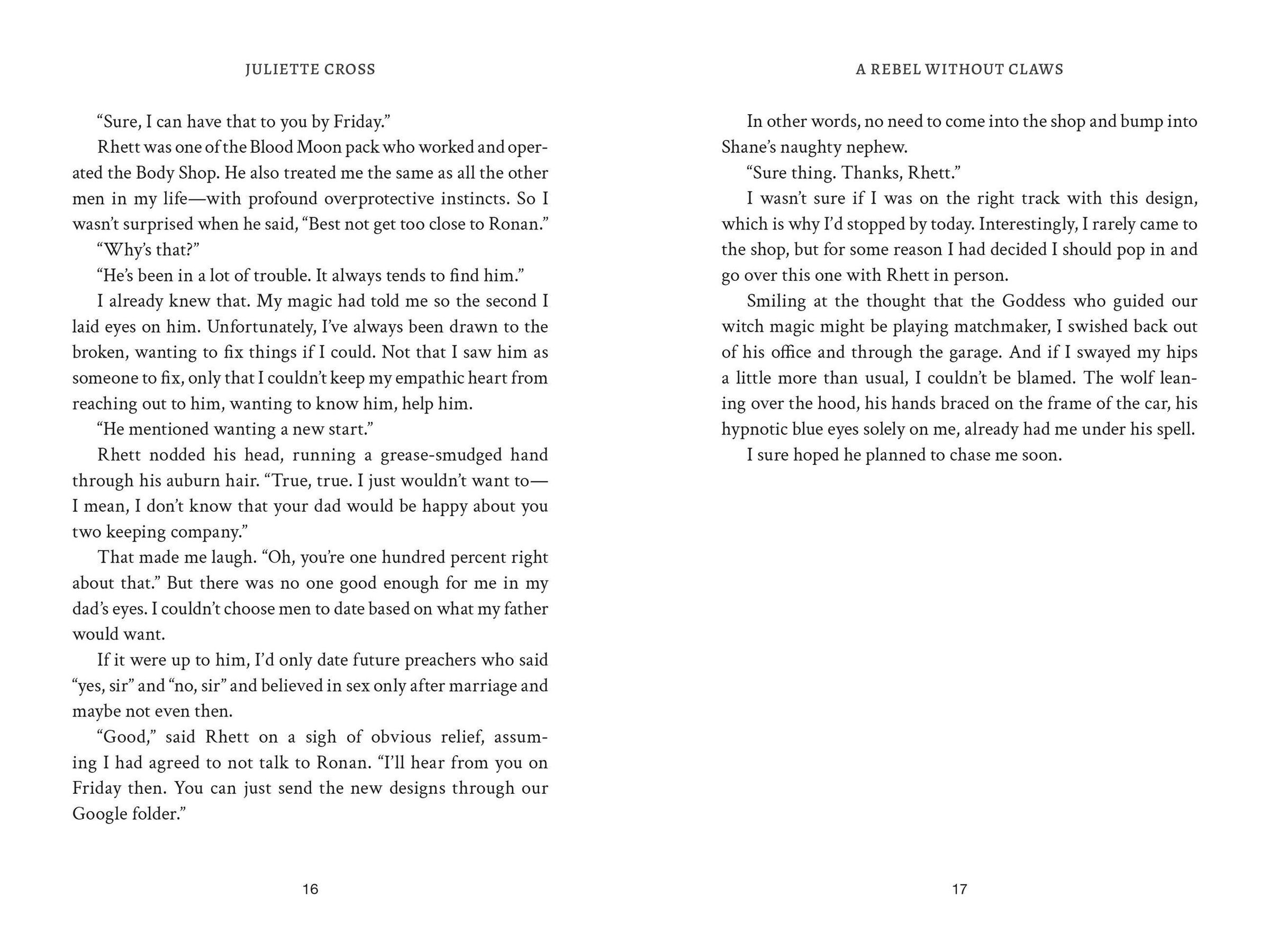 After yet another bar fight and arrest, bad boy Ronan Reed moves in with his uncle's Blood Moon pack in Louisiana and makes plans to lead his own team in the werewolf cage-fighting ring. But when he sets eyes on sweet Celine Cruz, his whole world stops and she becomes a tantalizing distraction he doesn't need. As an Aura witch, Celine always wants to help heal the broken. She's all too familiar with anxiety, so she's dedicated her life to helping those in need. But the second she meets Ronan, she's in trouble. He's everything her close-knit family would hate. So why can't she stay away? Ronan thinks she's a good girl. Little does he know, all Celine wants is to do wicked things with the bad boy werewolf, who revels in breaking all her rules. But as their forbidden romance becomes too tempting to resist, Ronan notices that the wolves are circling . . . and they're coming after his mate.