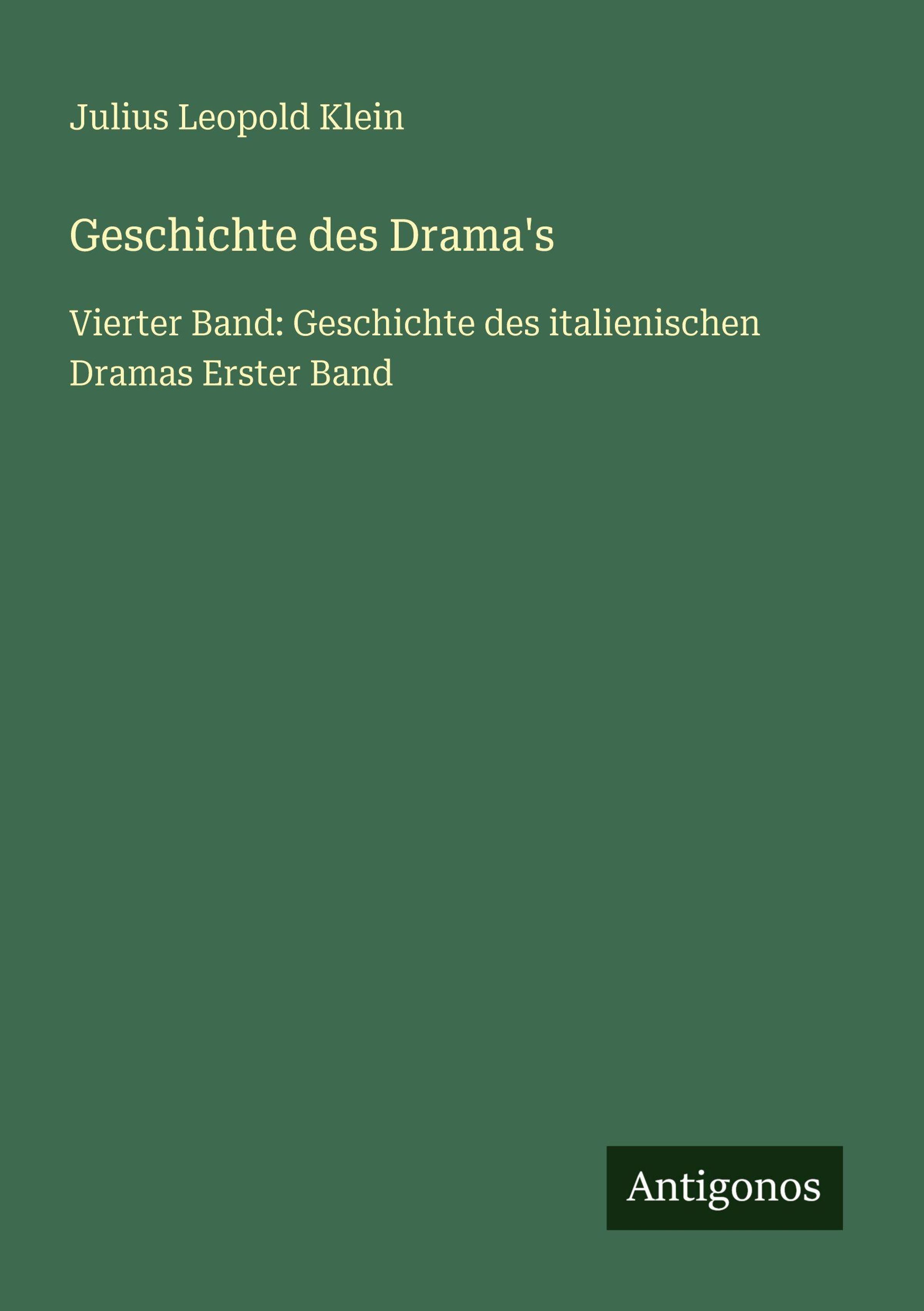 • Vierter Band: Geschichte des italienischen Dramas Erster Band