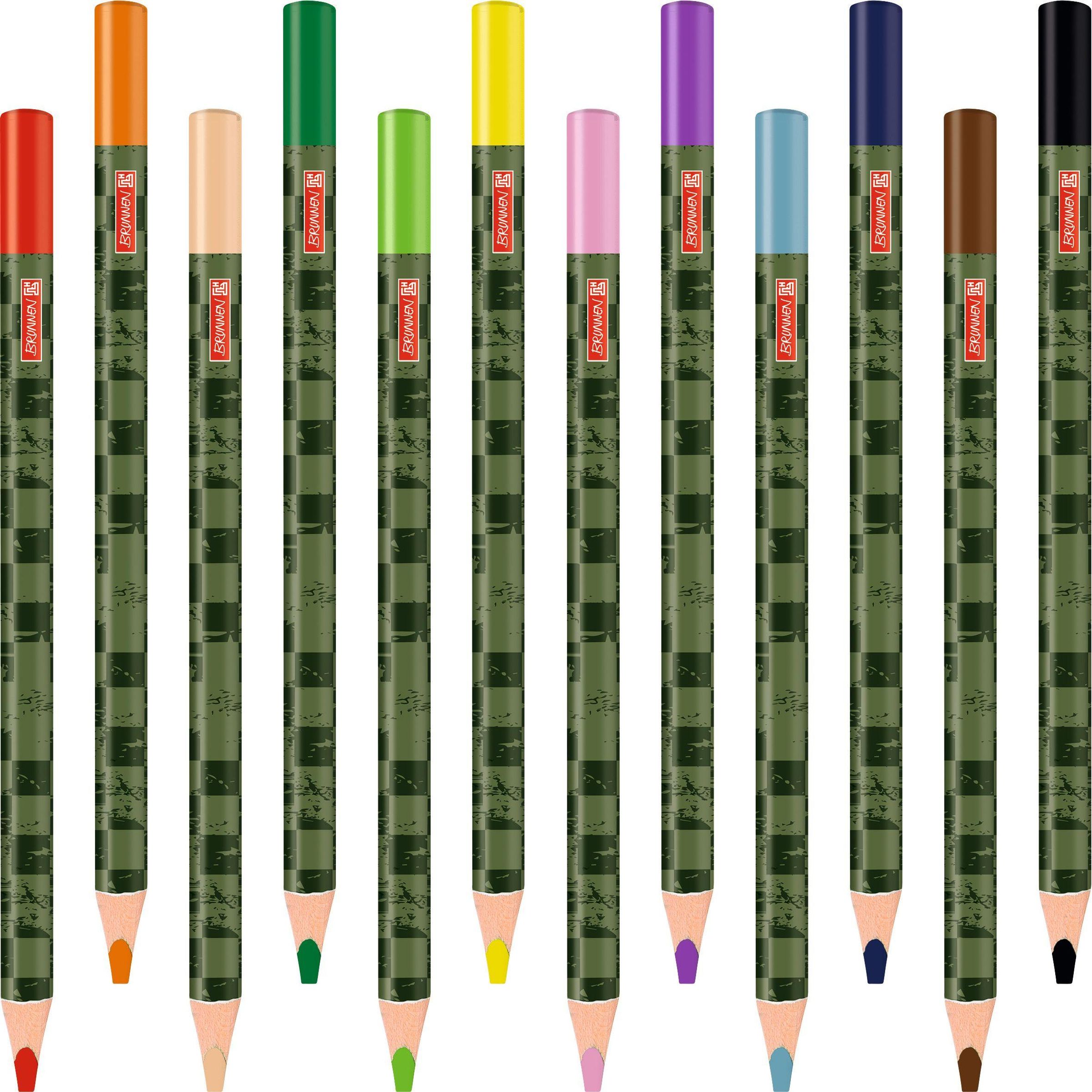 12 Stück ? Ø 10 mm, L: 176 mm ? Dreikantform, Schaftfarbe: grün, mehrfarbig ? Minenstärke: 5 mm, Schreibfarbe: gelb, hautfarben, orange, hellblau, dunkelblau, grün, hellgrün, pink, rot, lila, braun, schwarz, angespitzte Ausführung ? Dreikantform ? Holz ? nicht wasservermalbar ? Pappetui