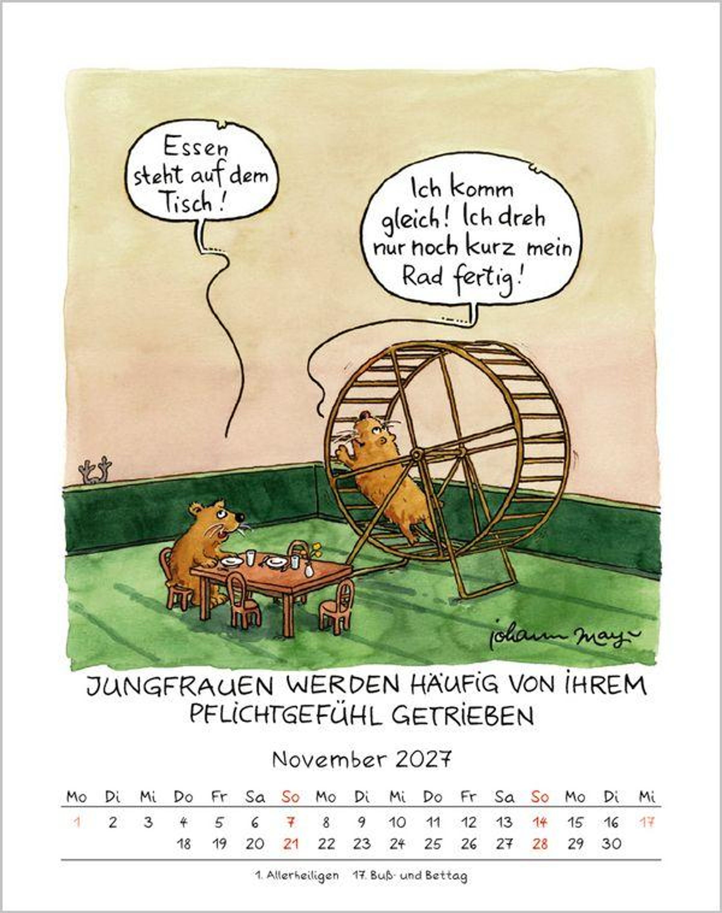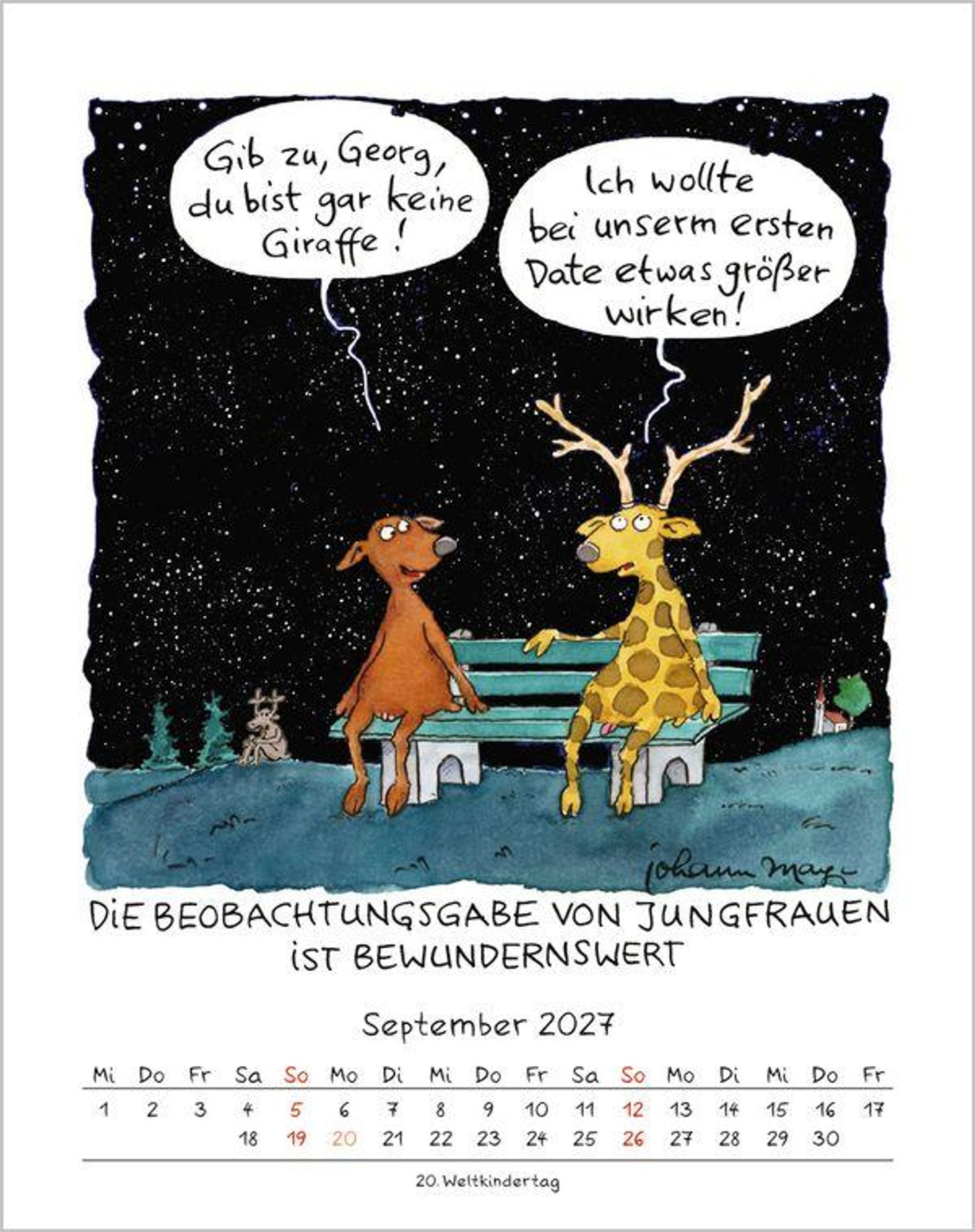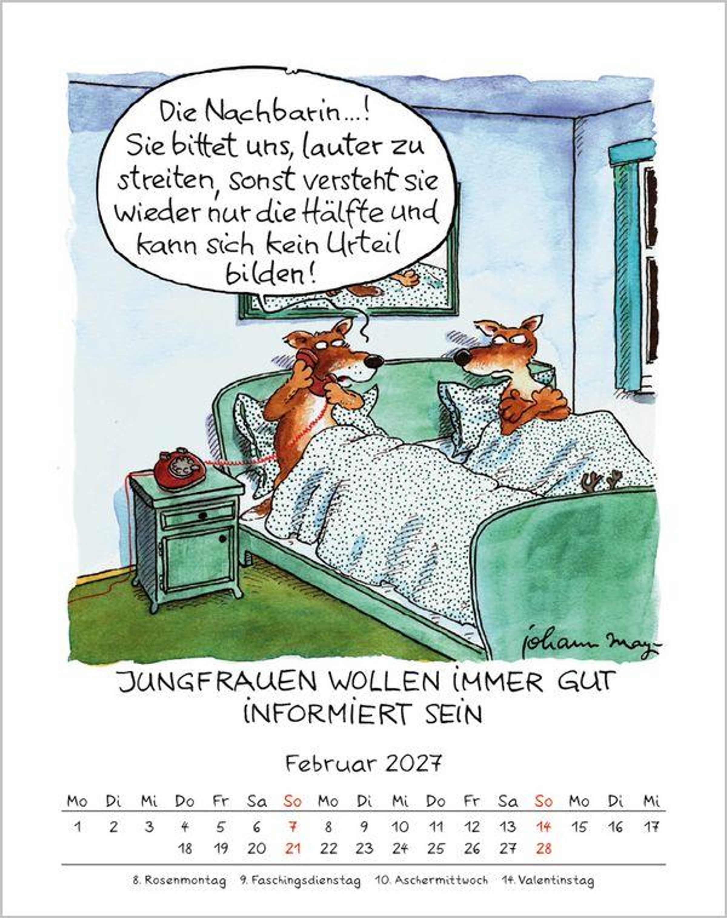 Der erfolgreiche Sternzeichenkalender mit charmanten und witzigen Cartoons für jeden Monat von Johann Mayr.