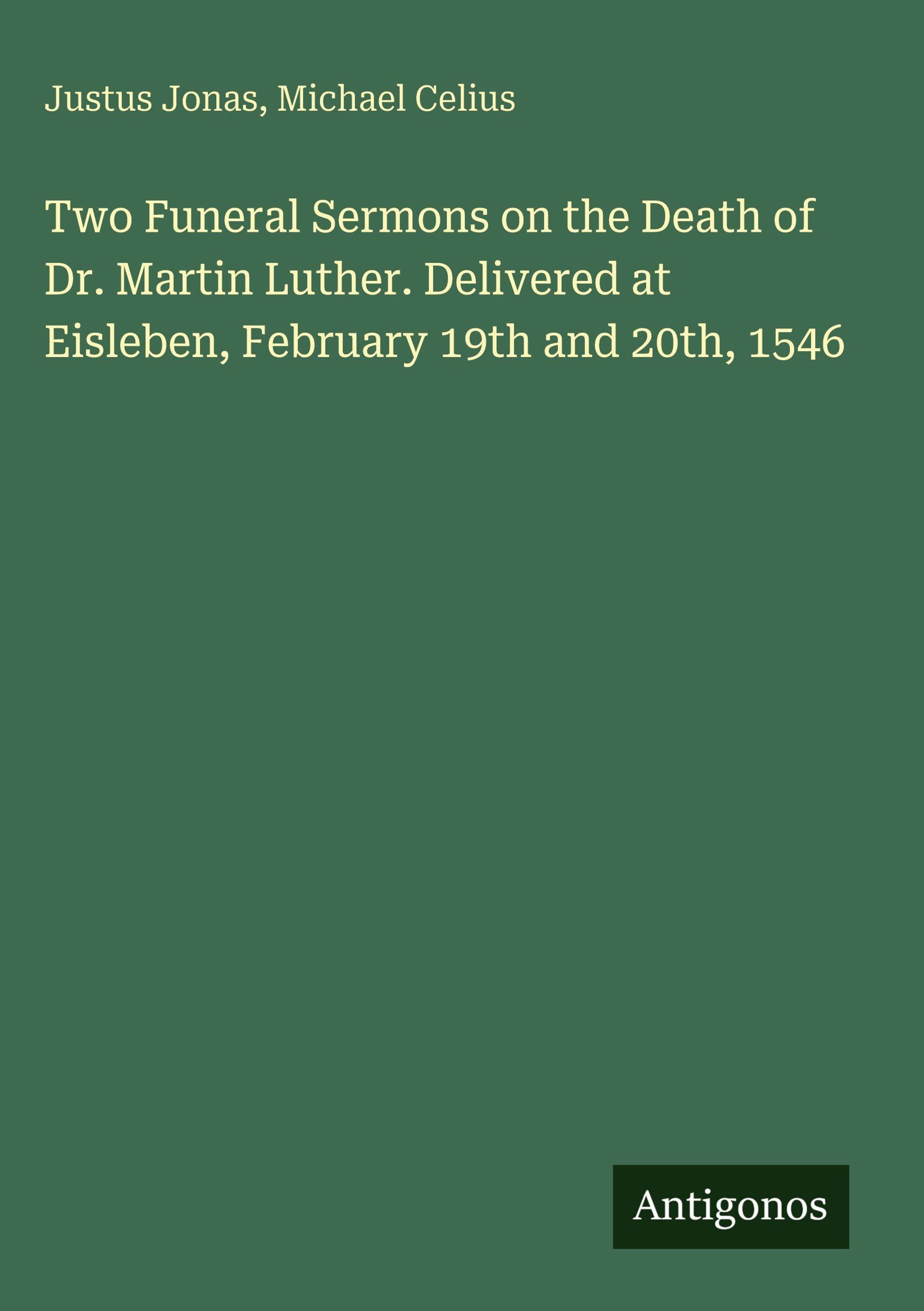 Two Funeral Sermons on the Death of Dr. Martin Luther. Delivered at Eisleben, February 19th and 20th, 1546