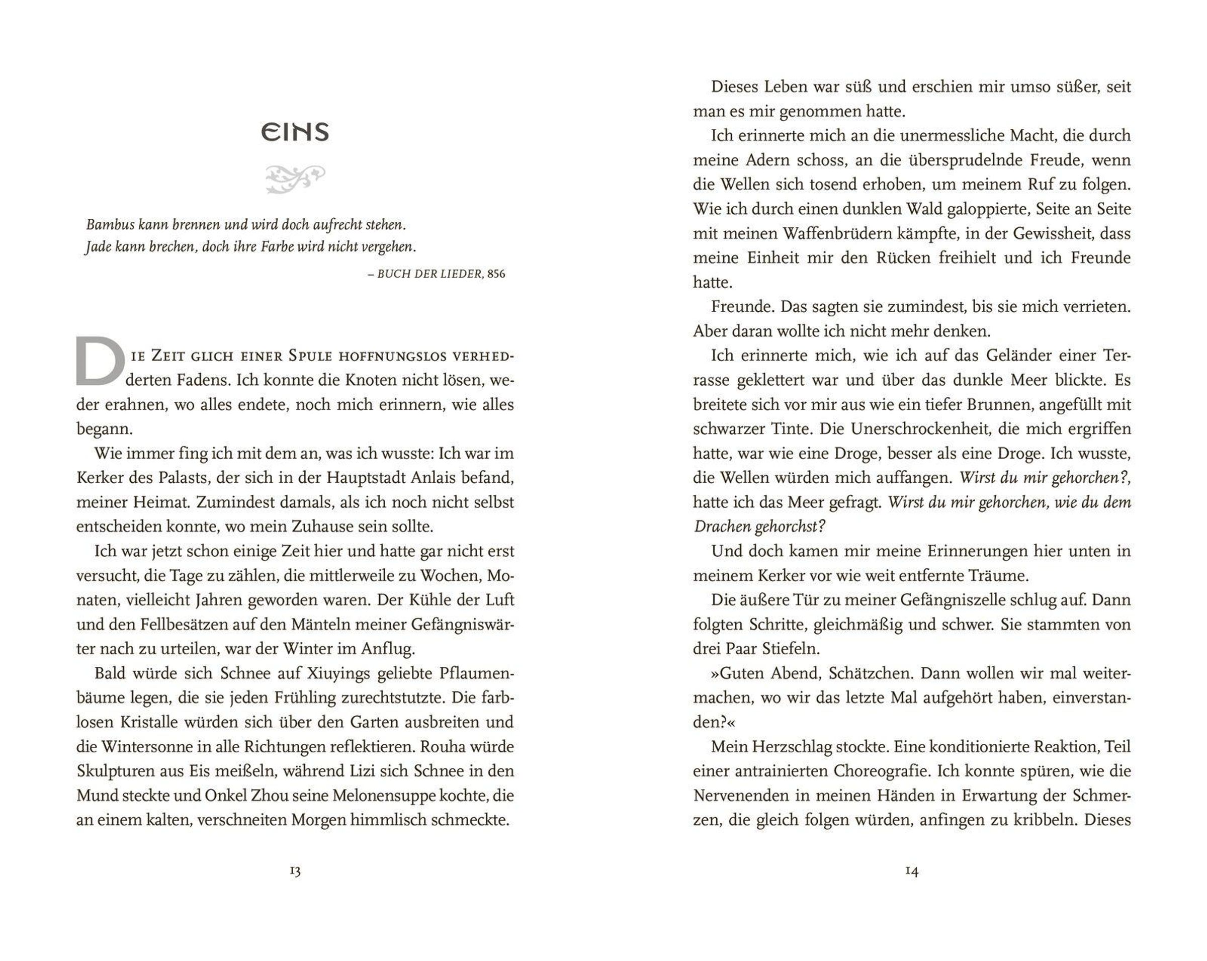 Meilin zahlt einen hohen Preis für ihren Sieg - als Gefangene des Königs schwebt sie zwischen Leben und Tod. Als sie endlich begnadigt wird, muss Meilin sich den strengen Regeln des Palasts unterziehen. Doch außerhalb der Palastmauern verbreitet sich die Legende von der Frau, die mit dem Schwert kämpft, wie ein Lauffeuer. Das weckt Begehrlichkeiten: Lei, vormaliger Prinz des Südens und nun Kriegsgefangener, braucht Meilin, um die politische Balance zwischen den drei Königreichen wiederherzustellen. Prinz Liu strebt den Thron an und will Meilin an seiner Seite wissen. Ein neuer Rebellenanführer aus dem Osten möchte Meilin für seine Revolution gewinnen. Und Meilins Drachengeist hat seine eigene, tödliche Agenda. Meilin muss sich entscheiden, wie sie ihre Freiheit verteidigen kann, wem ihre Loyalität gehört und ihr Herz ...