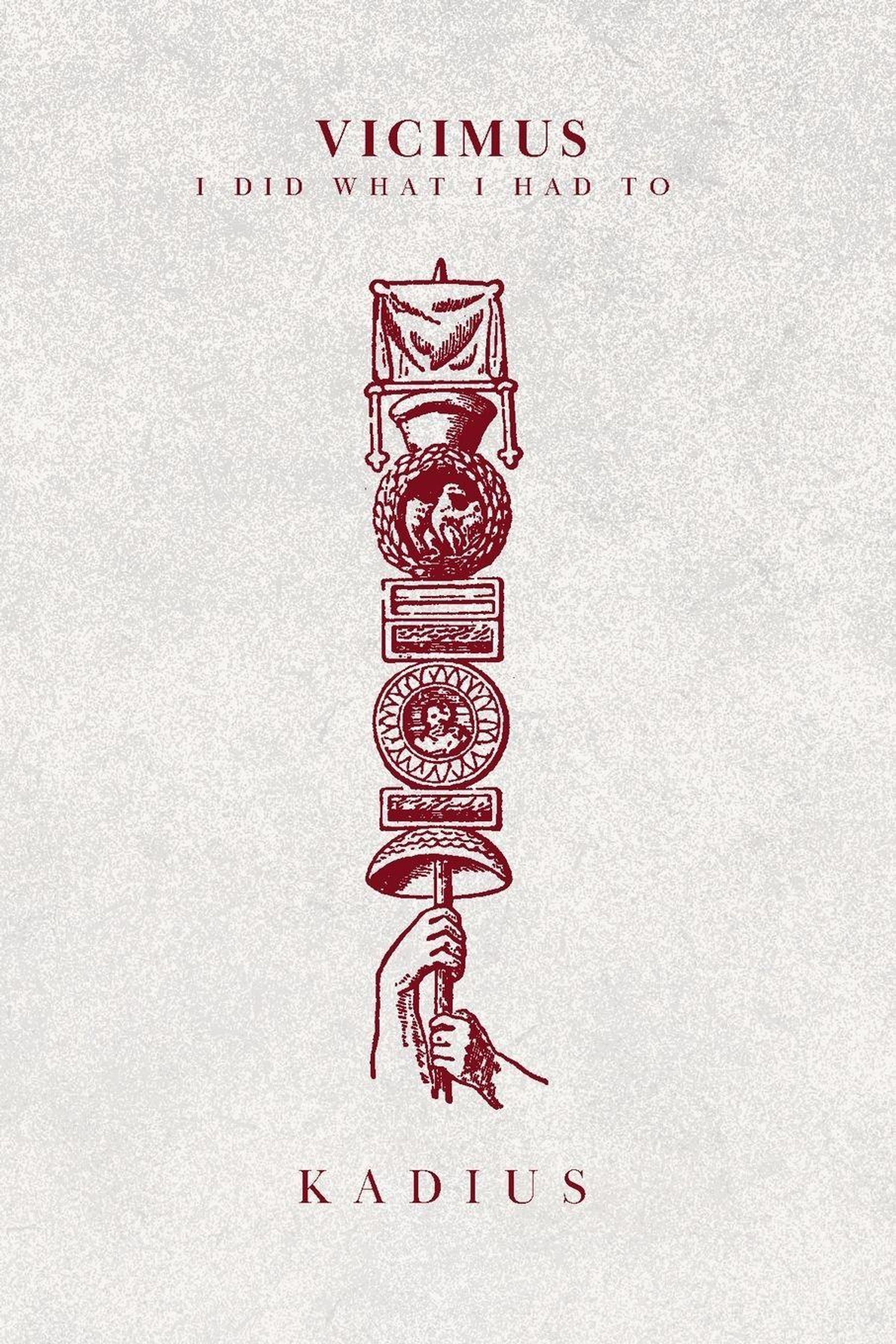 Texte: VICIMUS, I DID WHAT I HAD TO, KADIUS. Illustration: Ein antikes Zepter mit verschiedenen Ornamenten., Buch