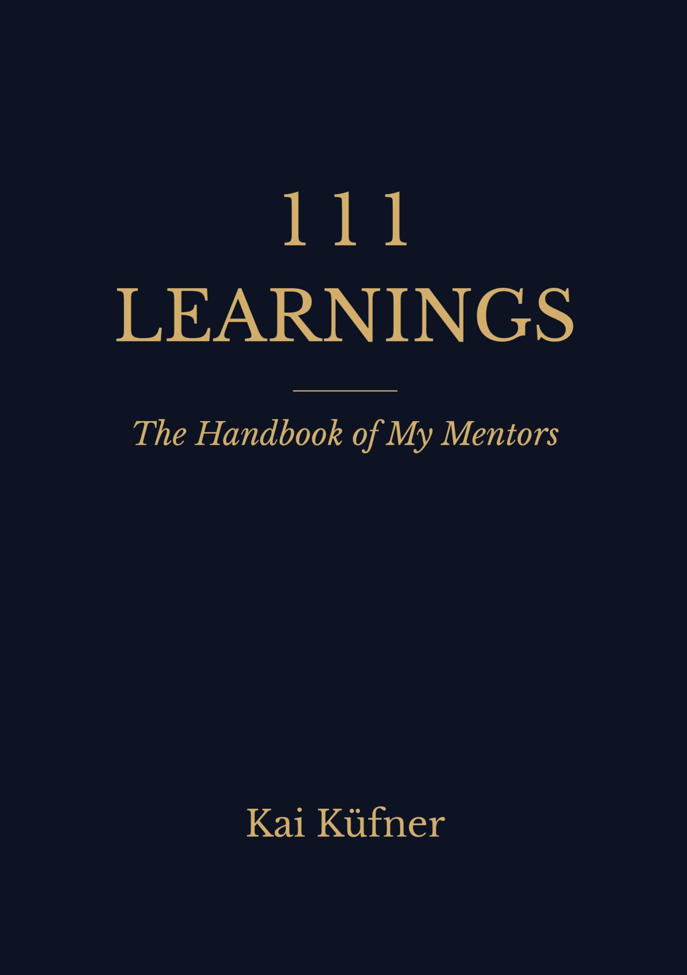 „111 Learnings: The Handbook of My Mentors“ von Kai Küfner. Dunkles Cover mit goldener Schrift., Buch