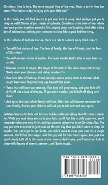 Christmas time is here! The most magical time of the year. Never a better time has come. What better a day to enjoy with your little one? In this book, you will find stories to put your kids to sleep. And perhaps put you to sleep as well? Stories of joy, stories of splendor. Christmas is the time of year where everyone gathers together around a fire, singing songs and laughing. And after a long day of celebration, nothing puts someone to sleep like a good bedtime story. In this volume of bedtime stories, there is a tale to capture every child's heart.